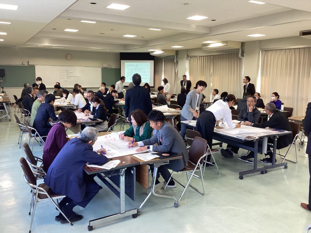 続いて、「ワールドカフェ」の形式で、教科横断的な学習について自由な対話を行いました。各テーブルとも異なる教科の先生が着席し、リラックスした雰囲気の中で、利点や課題を整理し意見交換を深めました。