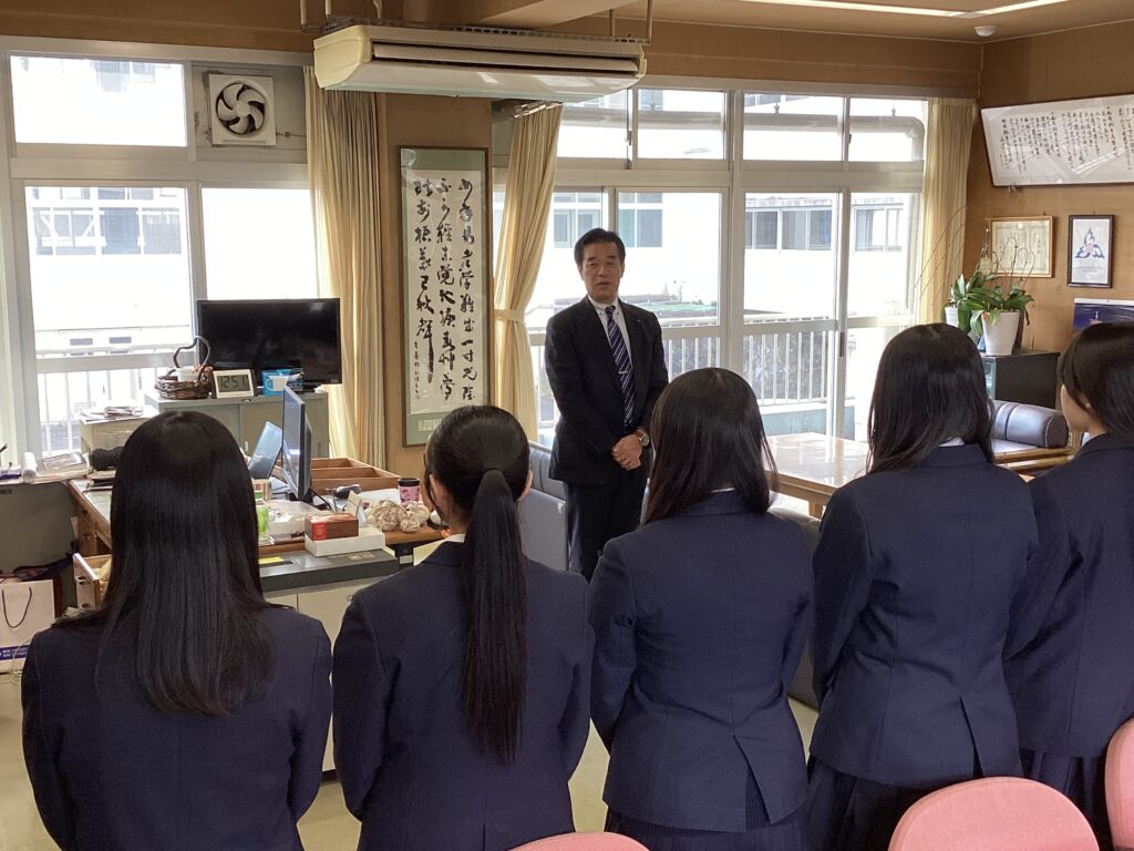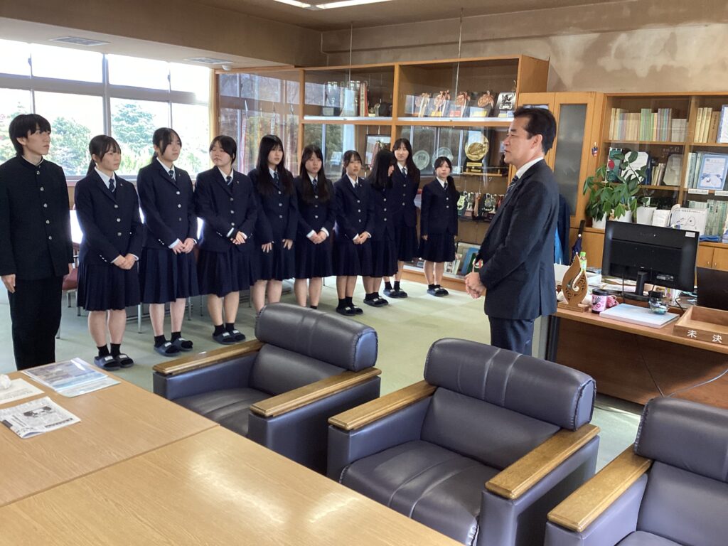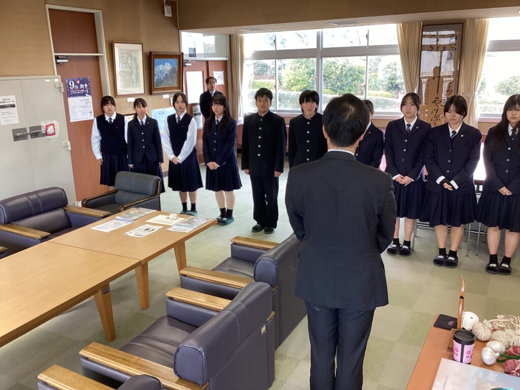 大分駅前広場にて、12月6日(日)に開催された「大分県商業高校生MICE」に参加した生徒のうち、15名が報告に来てくれました。