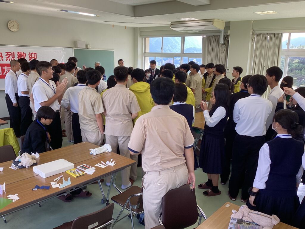 交流の時間も終わりに近づき、記念写真を撮影してお別れとなりました。生徒さんたちは次の訪問地へと移動され、今回の訪問は無事に終了しました。言語の壁を越えたコミュニケーションや、日本文化体験を通じて、相互理解と友情が育まれたことを大変嬉しく思います。ありがとうございました。