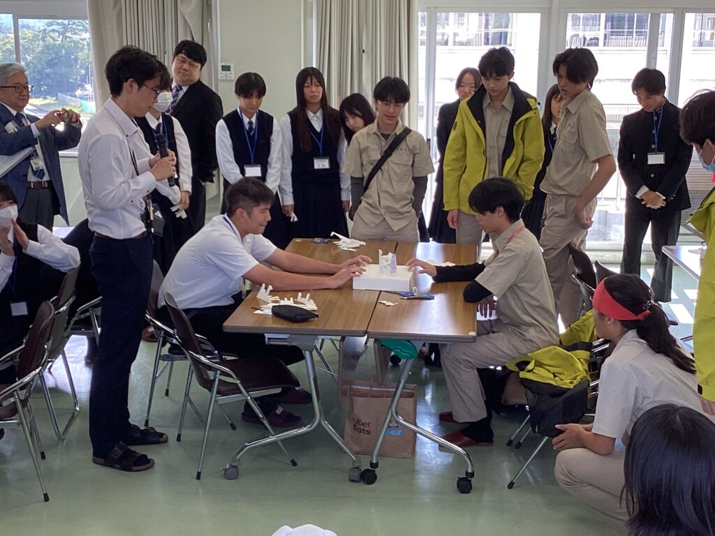 その後、日本文化体験として、トントン相撲を行いました。複雑なルールを避け、誰でも楽しめるシンプルな内容にしたことで、非常に盛り上がりました。
