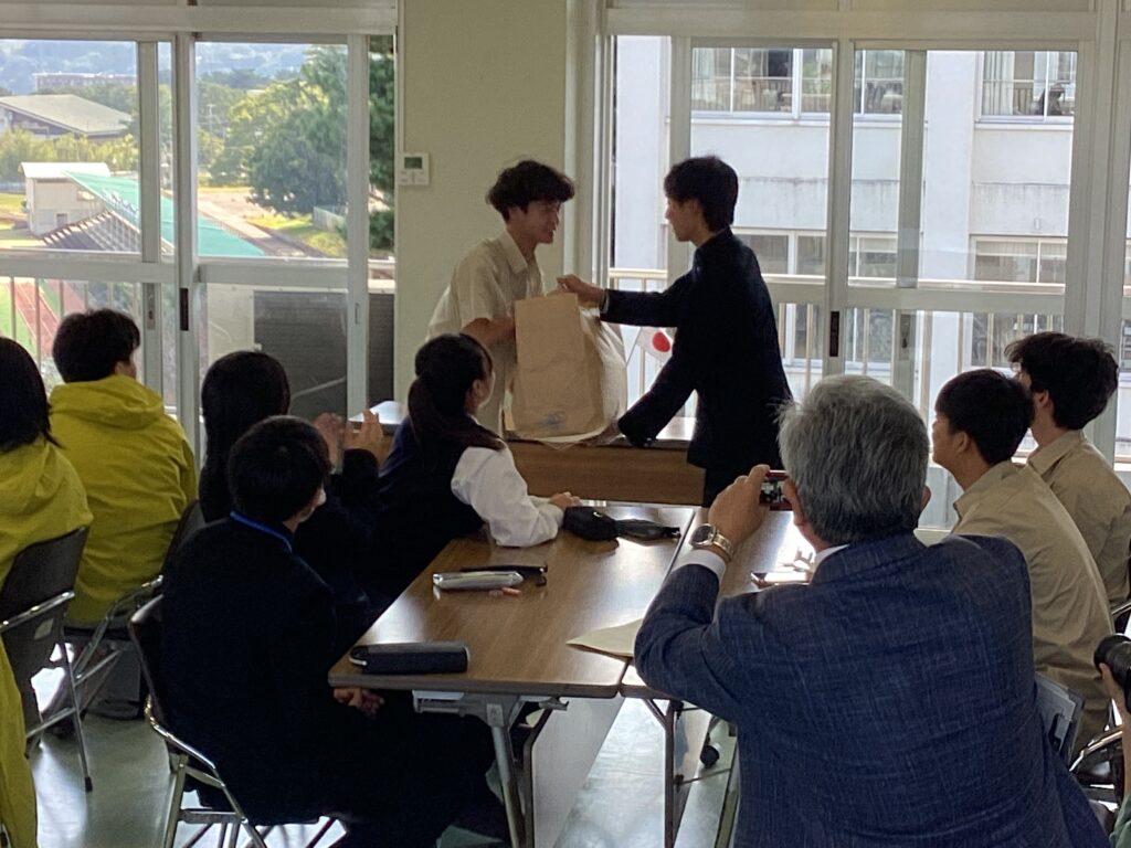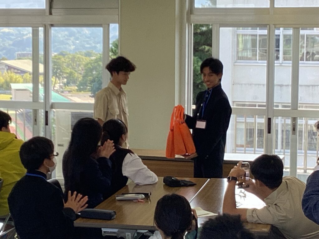 最後はお別れのセレモニーです。お互いにお土産を交換し、今回の感想を英語で述べていただきました。続いてのランチ交流では、日本語・英語・翻訳機を活用しながら、楽しいひとときを過ごしました。