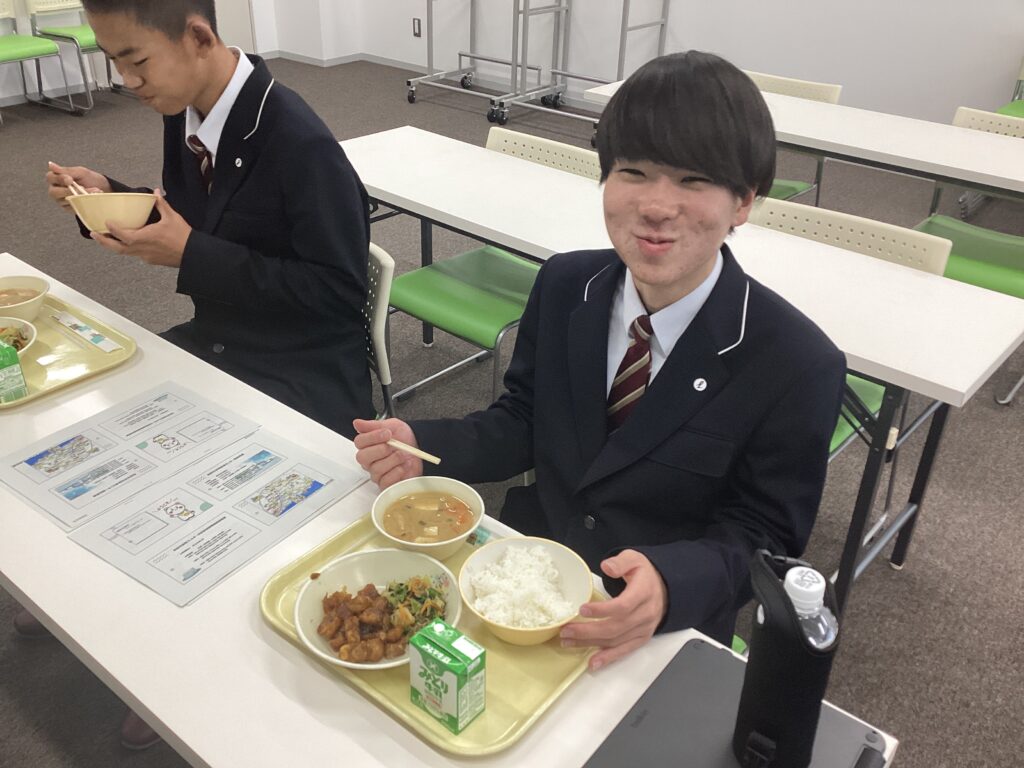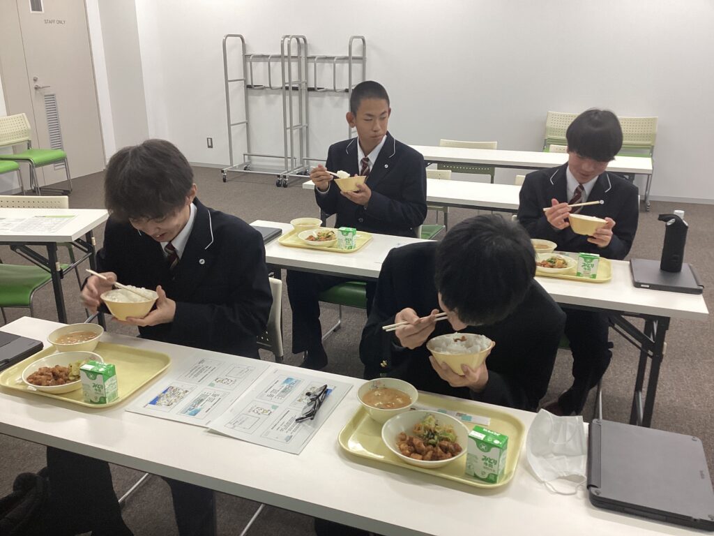 自分たちで考案した給食をいただきました(1年生総探)