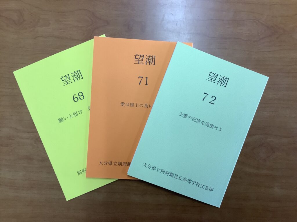 文芸部です。文芸部は現在部員は一人ですが、毎週水曜日の放課後に特別教室3にて一時間程度活動をしています。文芸部の活動内容は、大分県大会、九州大会入賞を目標に主に大会に向けた作品の制作です。小説から詩や俳句まで幅広いジャンルを制作しています。また、文化祭では謎解きの出し物などを行なっています。