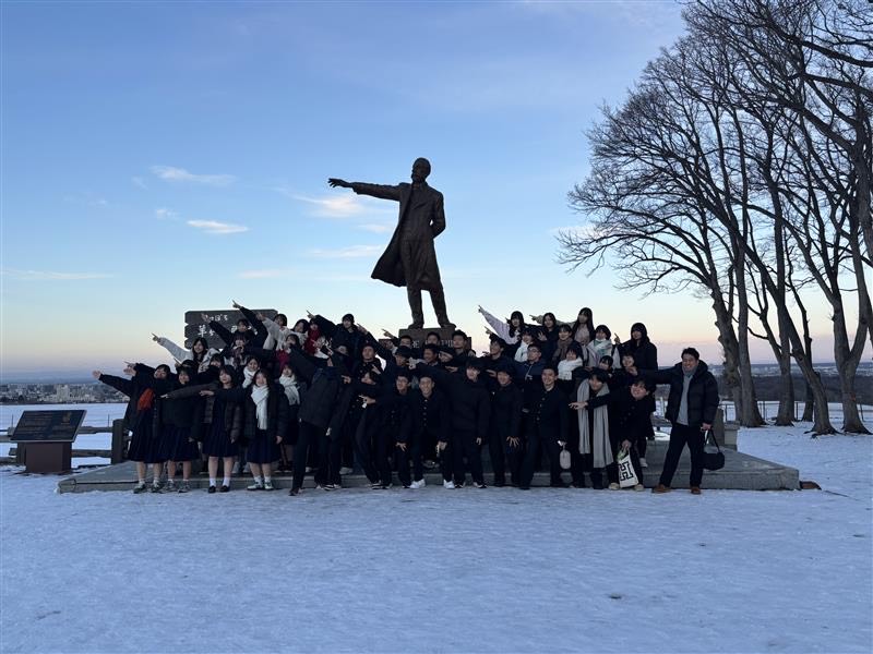 予定していた197名全員で出発でき、北海道に到着しました。本日は気温も高く、生徒たちは北海道はそんなに寒くない、という間違った認識を持ってしまったようです。その後、クラス別研修を行いました。