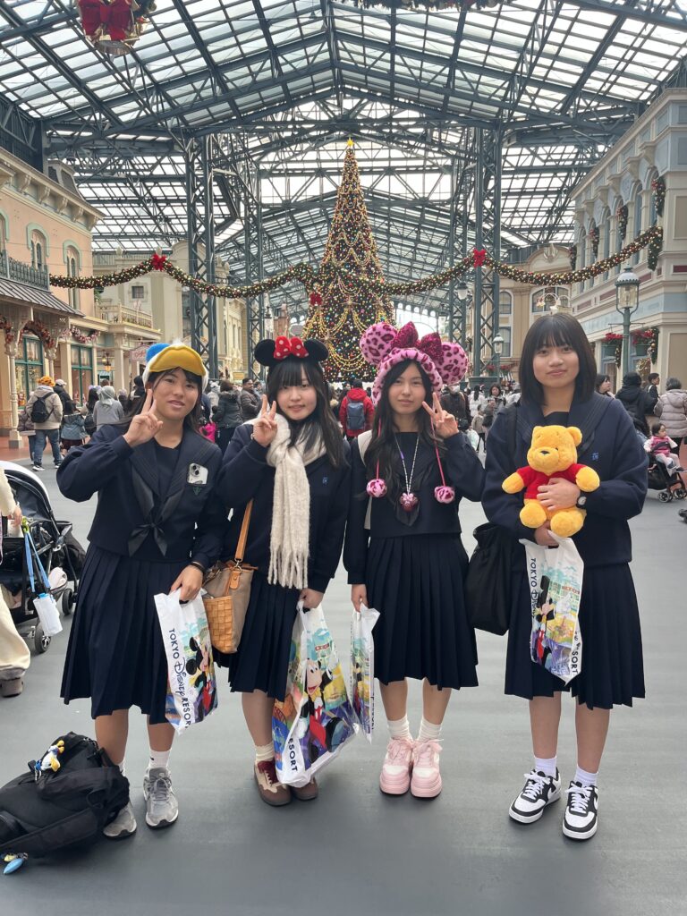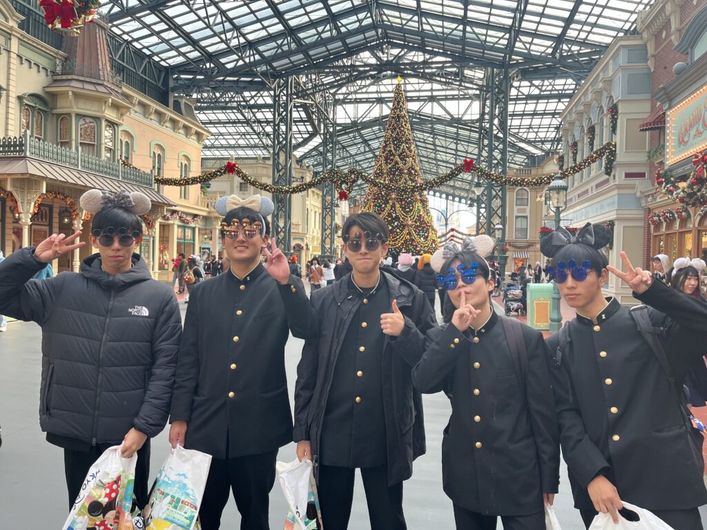 修学旅行の最終日は、三大イベントの一つ、東京ディズニーランド(TDL)研修です。朝はメインバックの自宅への発送もあり、早起きしなければなりませんでしたが、みんなの目はキラキラしていました。昨日、自主研修で散々歩いて疲れも残っているはずなのに、それに勝るウキウキ感が滲み出ていました!