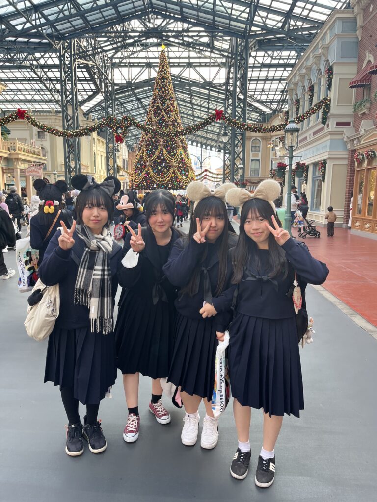 修学旅行の最終日は、三大イベントの一つ、東京ディズニーランド(TDL)研修です。朝はメインバックの自宅への発送もあり、早起きしなければなりませんでしたが、みんなの目はキラキラしていました。昨日、自主研修で散々歩いて疲れも残っているはずなのに、それに勝るウキウキ感が滲み出ていました!