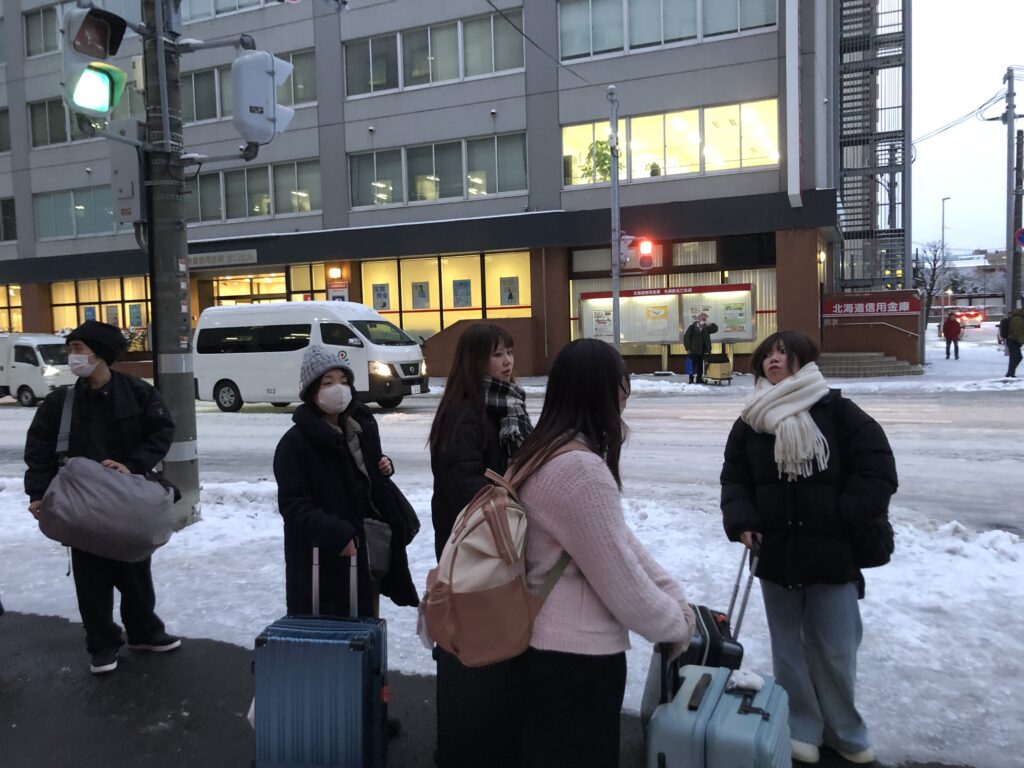 3年生は、12月9日(火)修学旅行に出発しました。1日目の日程は、日田バスセンターに集合ののち、10時ごろ福岡空港に到着。12時に北海道に向け出発し20分遅れで14時30分に新千歳空港に到着しました。電車で札幌へ向かい、16時ごろにはホテルに到着しました。夕食は、ジンギスカン料理を堪能しました。