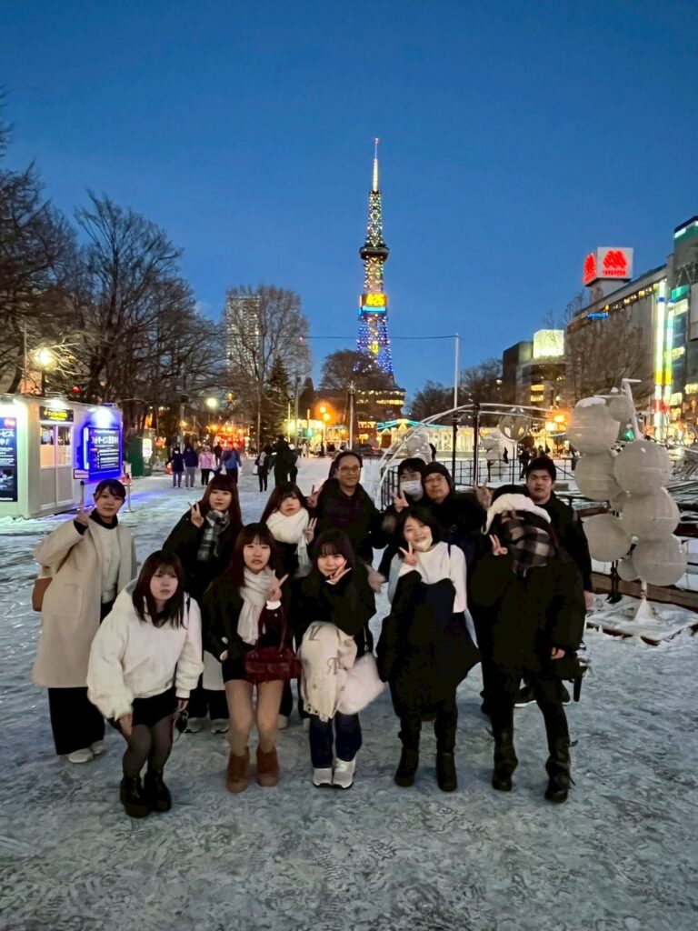 2日目の日程(12月10日)、8時にホテルを出発。電車とバスを利用して北海道博物館・北海道開拓の村へ向かいました。大通公園へもどり、15時ごろ AOAO SAPPORO(水族館)に到着。見学後大通公園周辺を散策しました。夕食は北海道の食材をふんだんに使ったディナーをとりました。