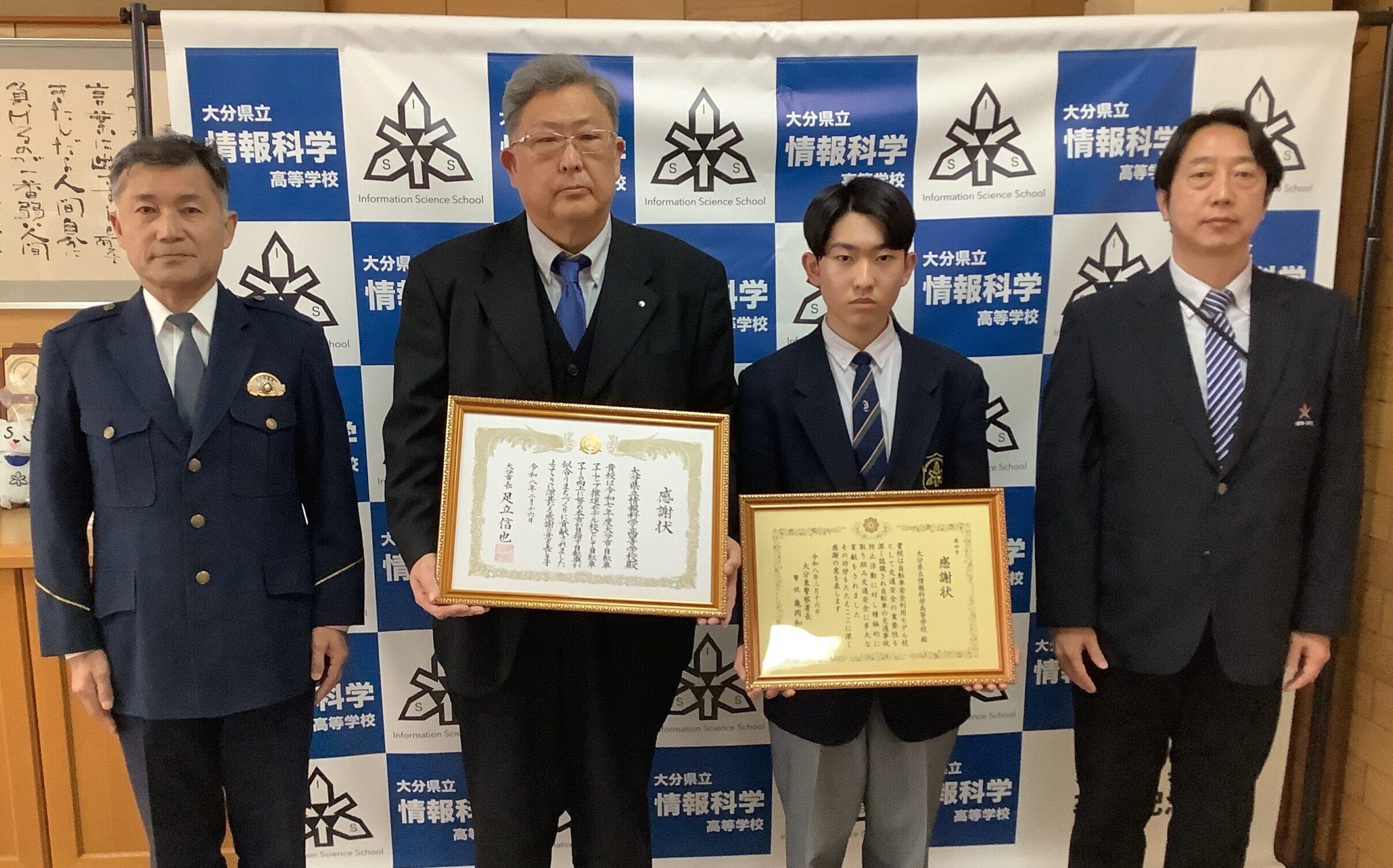 「ジョー」は、学校のコミュラボで生まれました。ある日、学生たちがプログラミングのプロジェクトに取り組んでいる最中、突如としてジョーは画面から飛び出してきました。彼の体はデータとコードで形成されており、頭にはアンテナがついています。彼の白と青の体は、純粋さと知識への探求心を象徴しています。ジョーはこれからも大分県立情報科学高校のシンボルとして未来のIT専門家の卵をサポートし続けます。