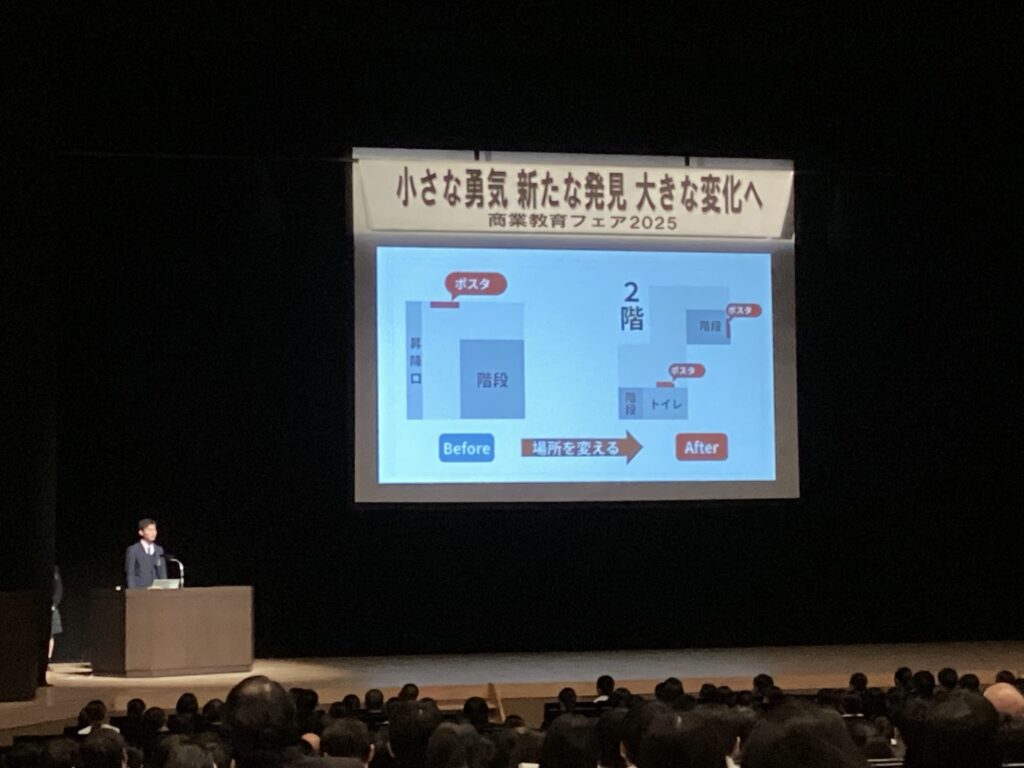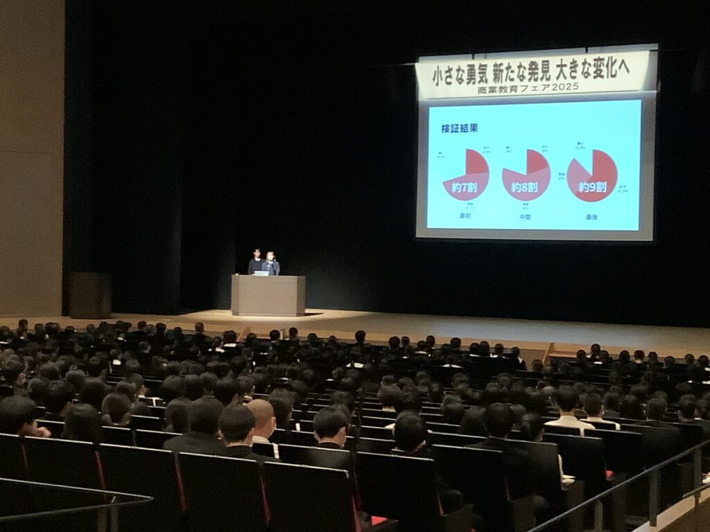 12月19日(金)、ホルトホール大分にて商業教育フェアが開催されました。当日は、県内の商業高校が一堂に会し、実習や調査活動を通して学んだ成果を、工夫を凝らして分かりやすく発表しました。