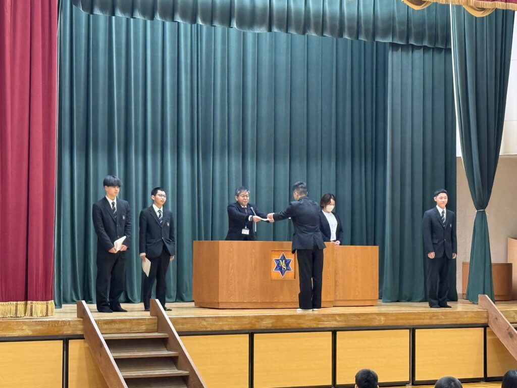 本日、令和7年度を締めくくる修了式、および皆勤賞の表彰式を執り行いました。