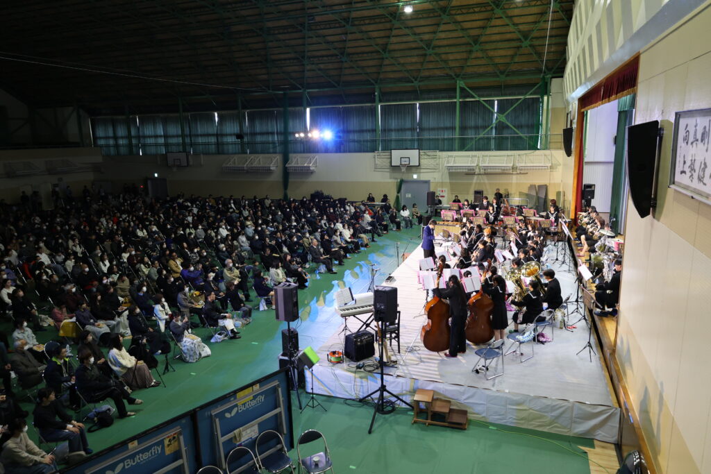 3月21日(土・祝)、「杵高ブラス★スプリングコンサート」が開催され、600人近くのお客様が本校体育館にお越しくださいました。