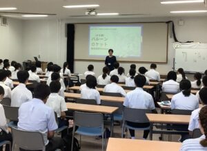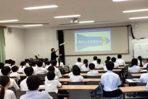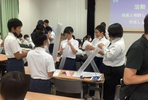 9月19日(金)、国東高校では安岐中学校の1年生に向けて、ロケット体験授業を実施しました。傘袋でロケットを作り、「フィン」を付けることで、ロケットがまっすぐに進むことを体験しました。中学1年生は思い思いのフィンを付け、点数が付けられた箱を目指して飛ばしました。宇宙やロケットが少し身近に感じられたことと思います。中学生にも、ぜひ宇宙の事に興味を持ってもらいたいですね!