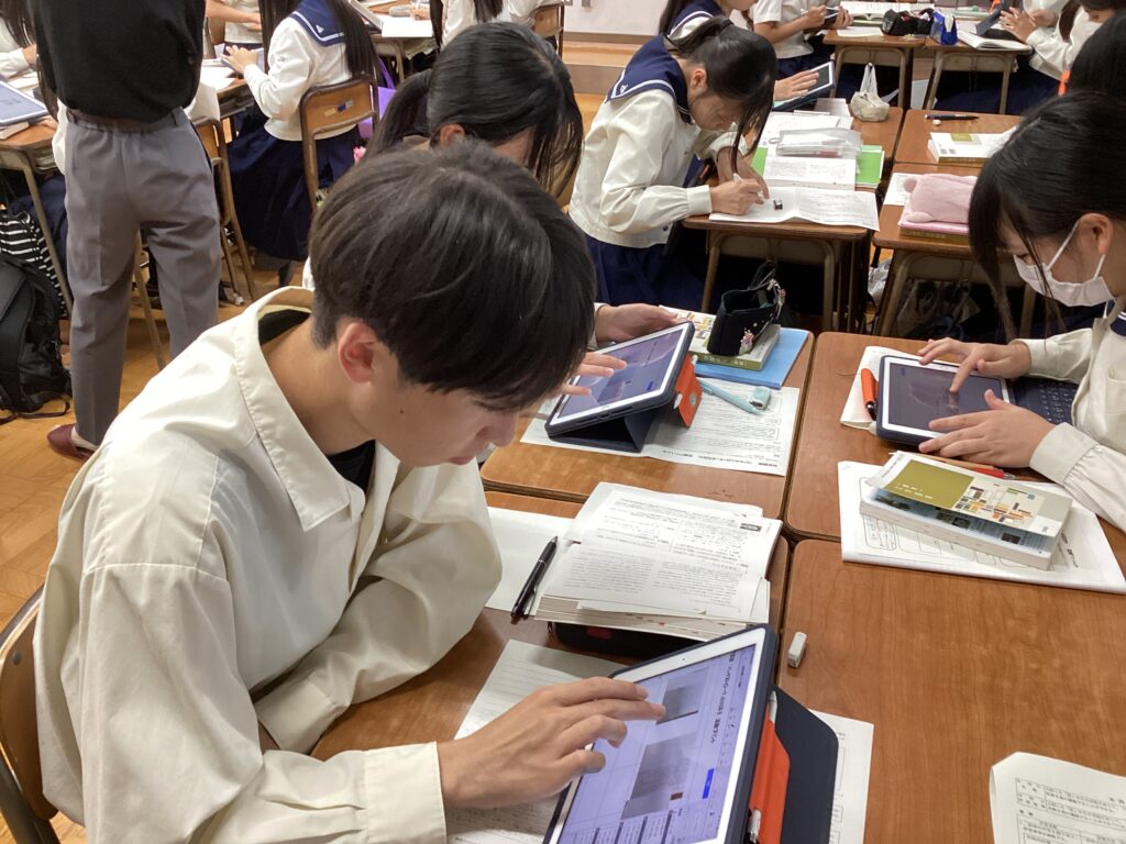 翌21日には、2年3組で古長教諭による国語科(文学国語)の研究授業が実施されました。メタモジを活用し、作品に対する自分の感じ方や解釈をリアルタイムで共有し合う活動を展開。ICTを活かした双方向的な学びを通じて、生徒一人ひとりが主体的に表現し、文学への理解を深める姿が見られました。 どの授業も、生徒の思考を深め、主体的な学びを促す工夫にあふれた実践となりました。