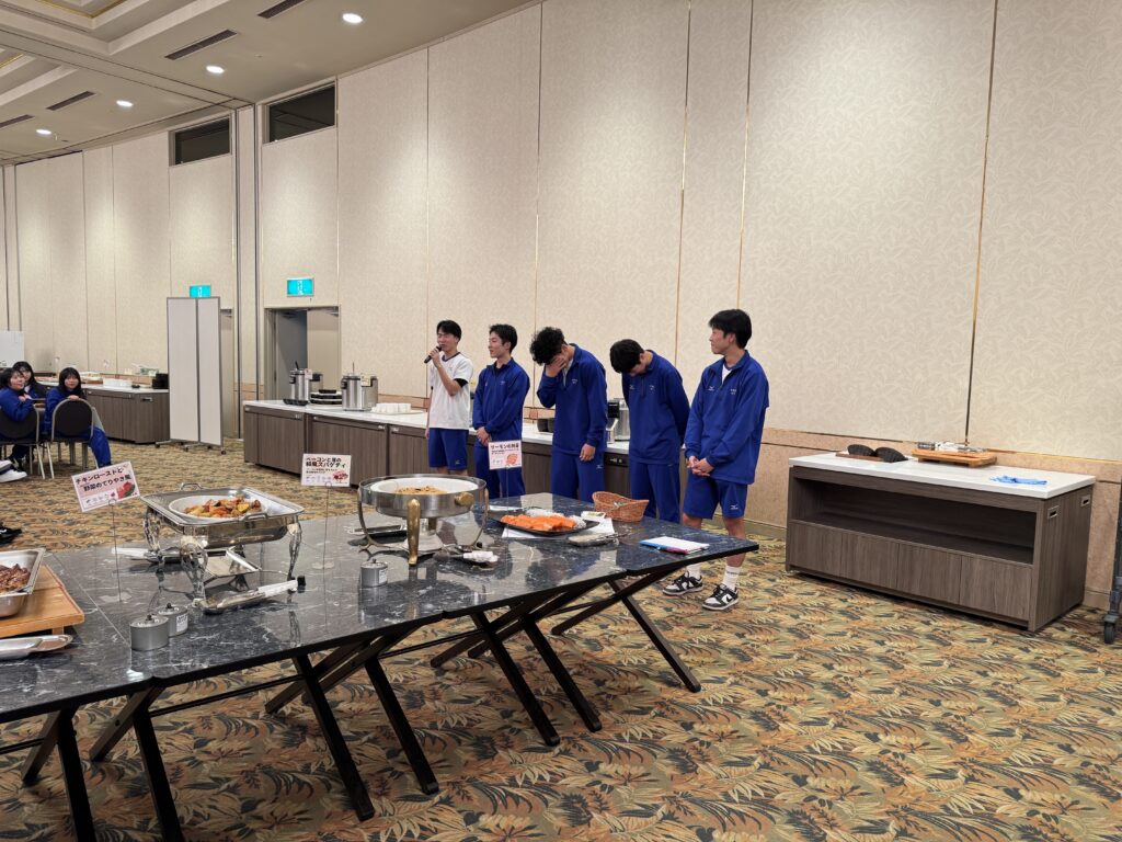 夕食の司会はバスケ部男子が担当し、夕食前に大いに会場を盛り上げてくれました。
