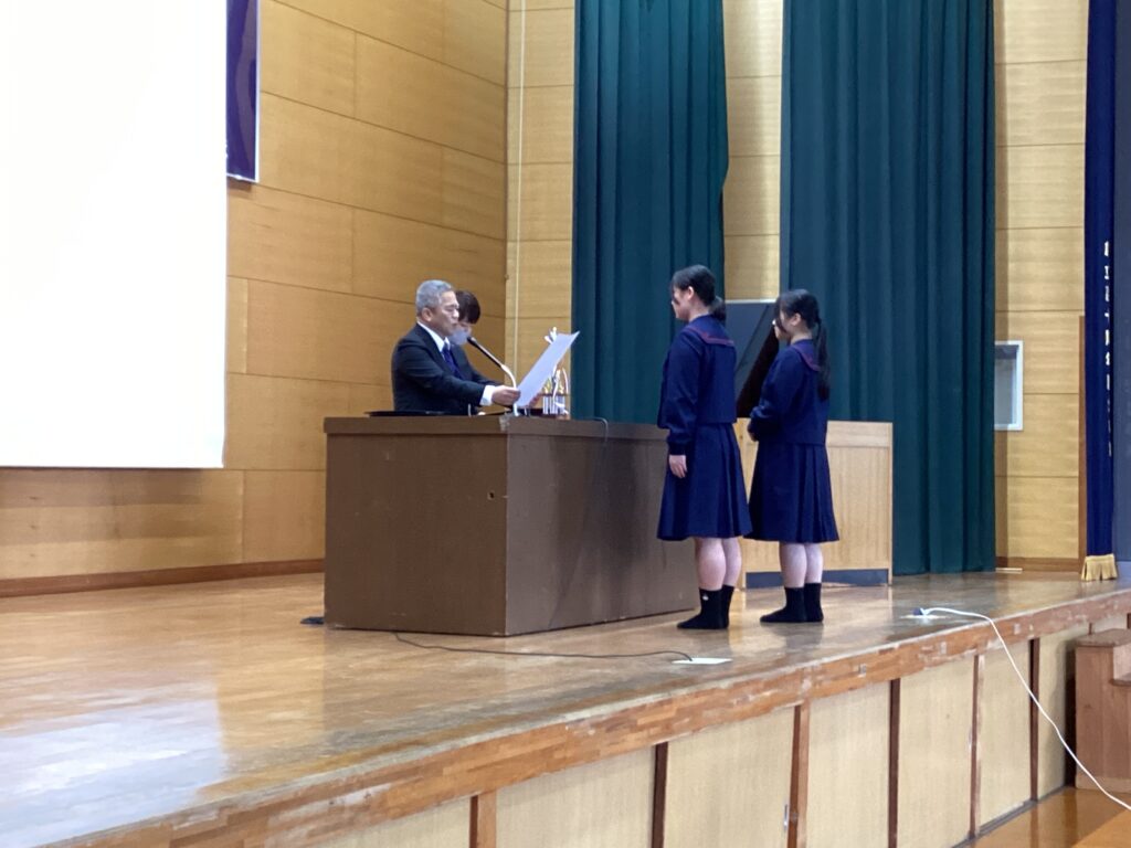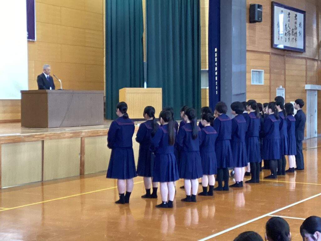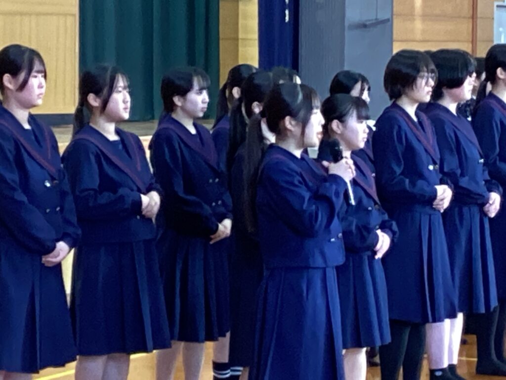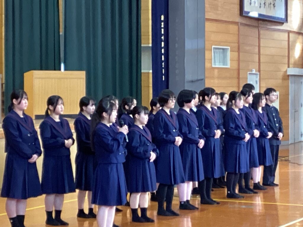壮行会では、髙橋校長先生から「これまで積み重ねてきた練習に自信を持ち、全国の舞台でも思いきり力を発揮してほしい」と温かい激励の言葉が贈られました。また、市川生徒会長からも応援のメッセージが送られ、部員たちは真剣な表情で耳を傾けていました。