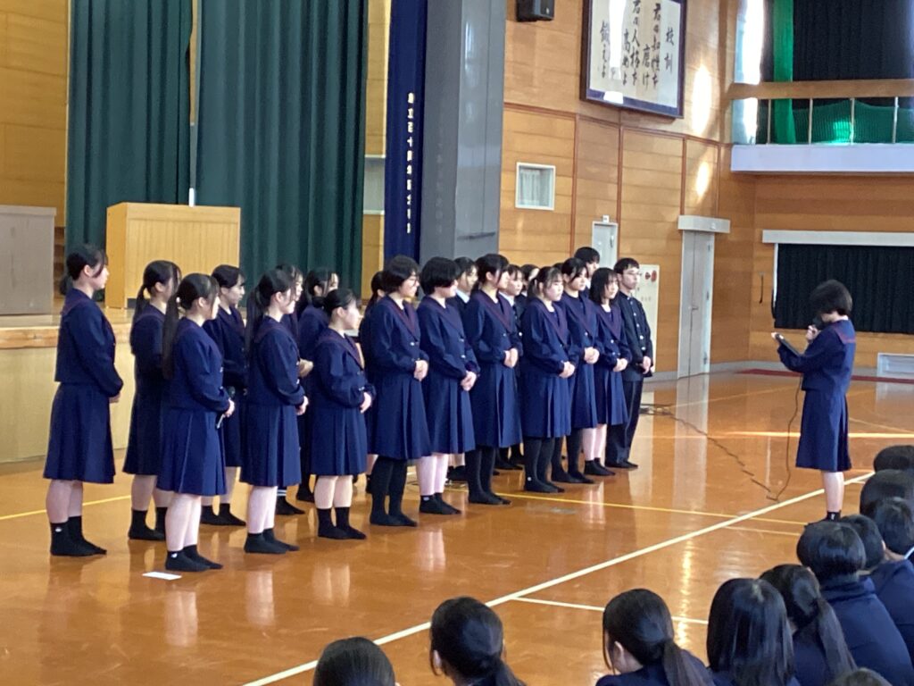 2月5日(木)、7限終了後に吹奏楽部の全国大会出場を祝う壮行会が行われました。先日行われたマーチングステージ全国大会九州予選において、本校吹奏楽部は見事金賞を受賞し、全国大会への出場を決めました。体育館には多くの拍手が響き、日々の努力が実を結んだことを実感する時間となりました。