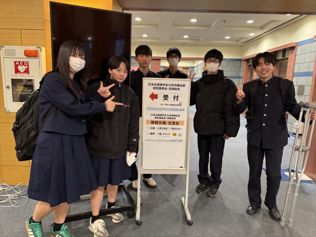 2月28日(土)、総合的な探究活動に取り組んできた2年生を代表して6名の生徒が、日本水環境学会九州沖縄支部にご招待いただき、研究発表を行いました!