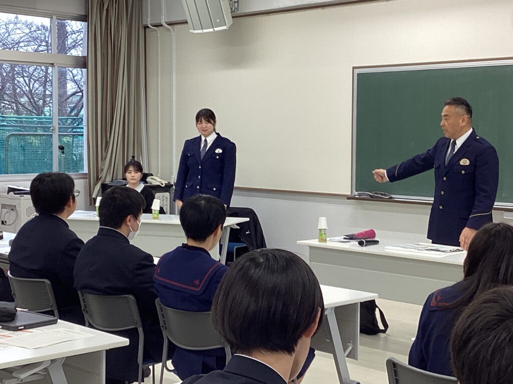 普段はなかなか直接聞くことのできない現場のお話に触れ、生徒にとって警察という仕事をより身近に感じる機会となりました。今回の講話を通して、公務員という進路について考える貴重な時間になったようです。