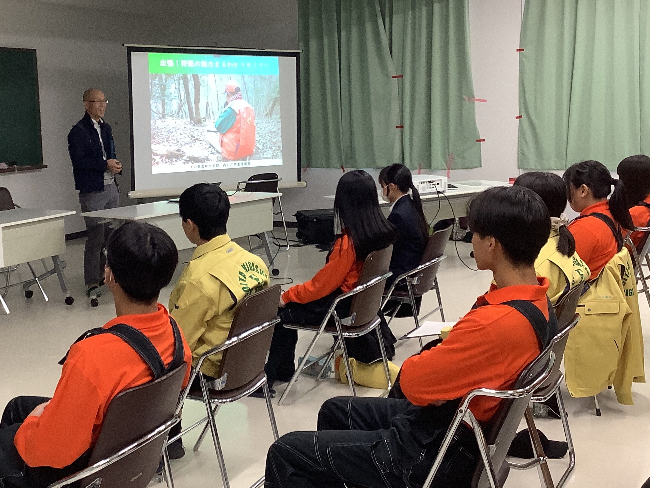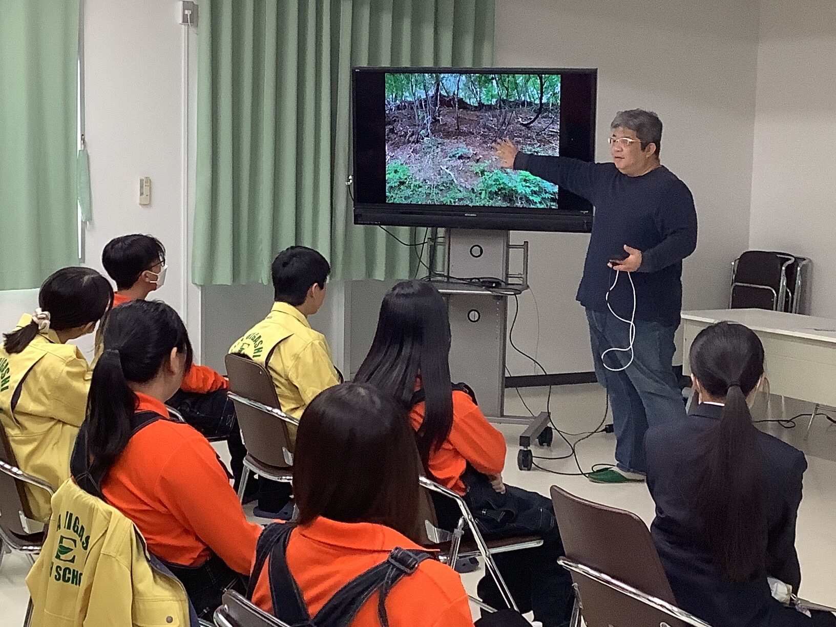 大分県森との共生推進室森林環境保護班・オーエスピー商会から、講師の先生2名が来校。