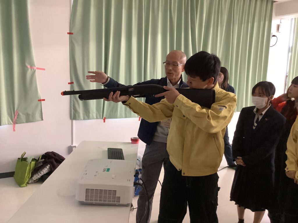「銃が重く、驚いた。当たったときはうれしかった」と、笑顔を見せていました。