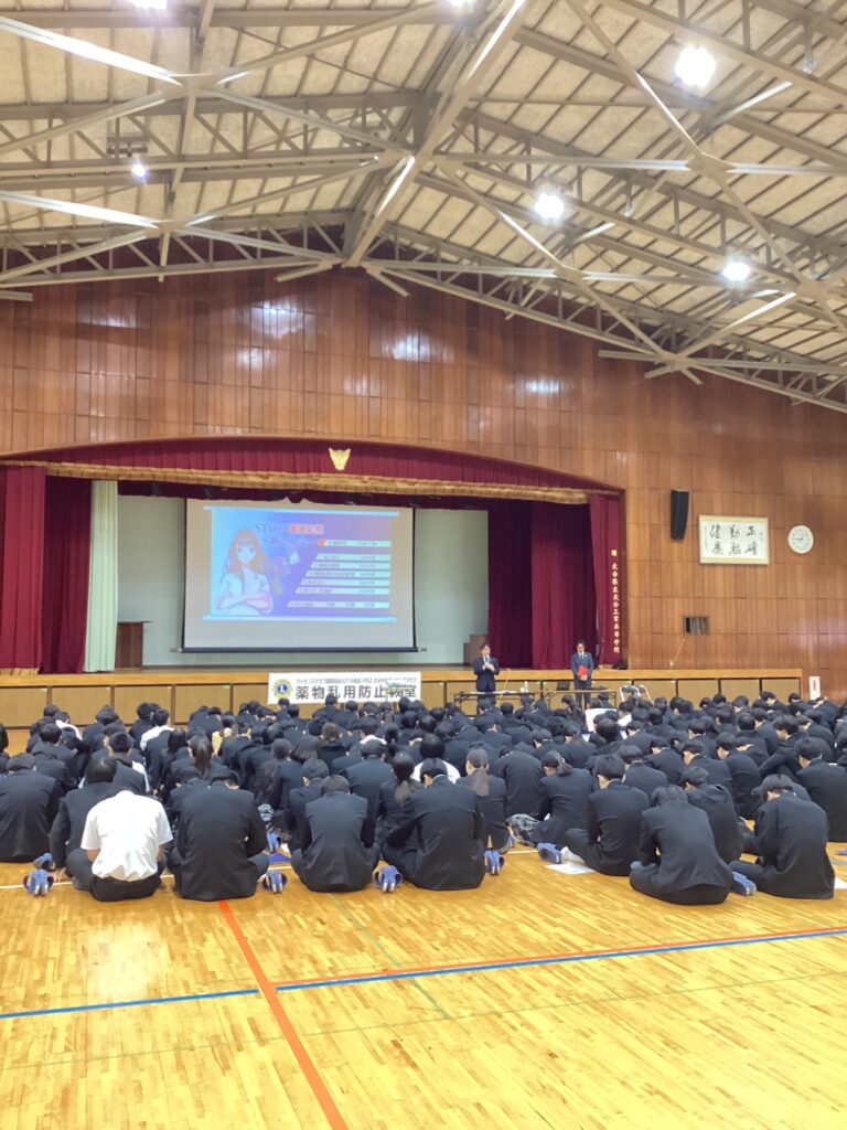 覚せい剤や大麻などに手を出すことの危険性を具体的な事例を挙げて説明してくださり、「断る勇気を持つことが大切」ということを学びました。生徒は「薬物はとても恐ろしいものだと改めて感じた」、「薬物の危険性や普通の薬でも数や使い方を間違えると危険なものになってしまうということを知ることが出来た」ということを感じたようです。