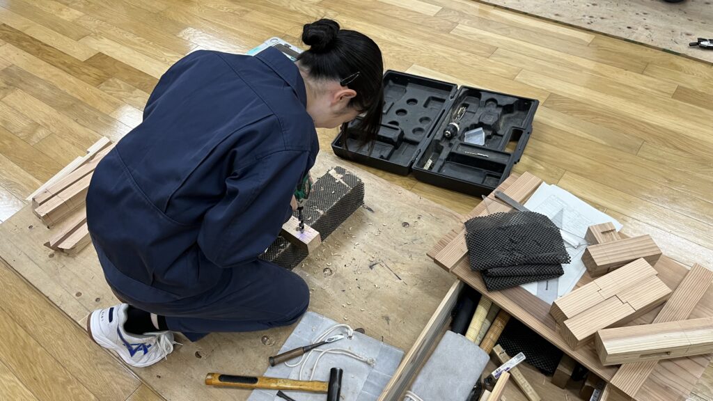 資格取得を目指し、木材加工や組み立ての練習に取り組んでいます。