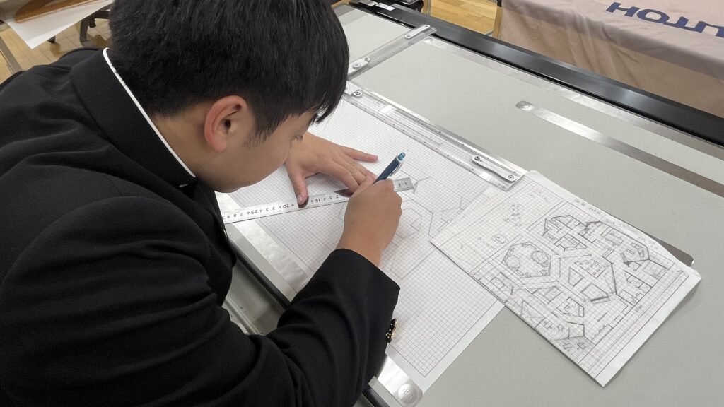 自分のアイデアや図面や模型で表現し、コンテストに挑戦します。