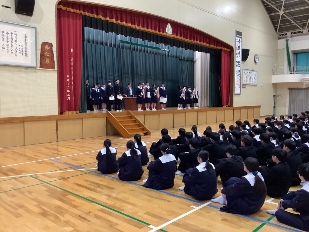 男子バスケットボール部、科学部、読書感想画など好成績を収めた部活動、個人が表彰されましました。