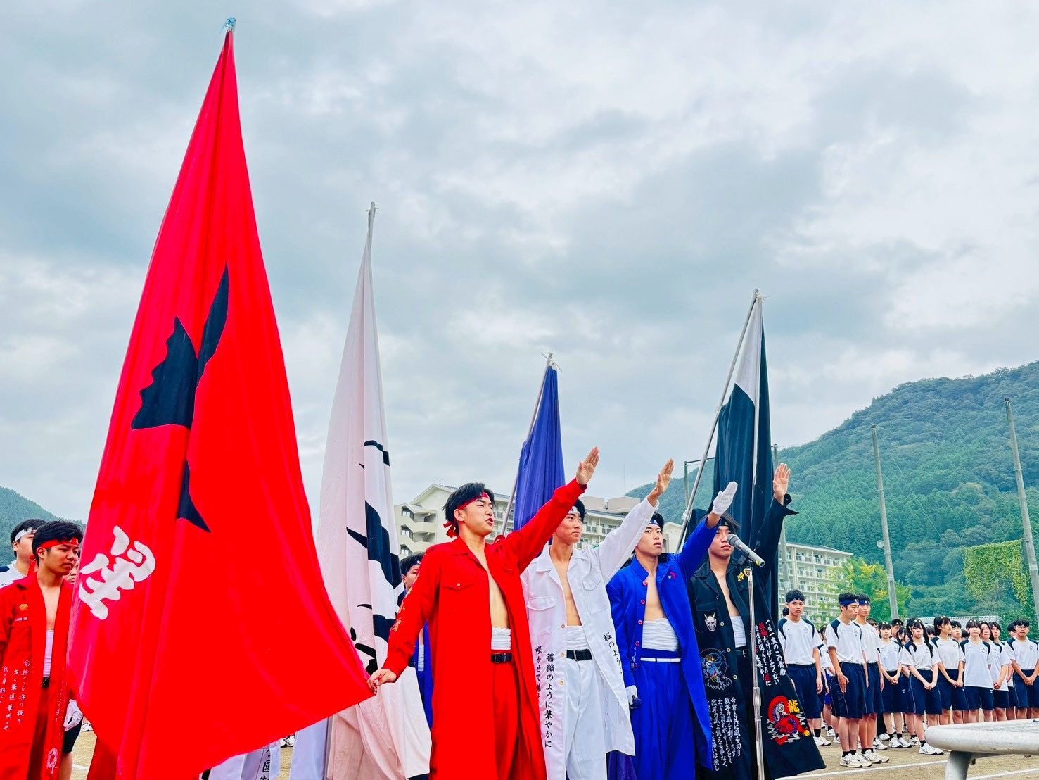 10月3日(金)紫豊祭、体育の部が行われました。小雨の中、プログラムを変更し時間を短縮し行いました。すべての競技は実施できませんでしたが、団長を中心に各団とも一致団結し競技に臨み、今年度優勝は「銀河団」でした!