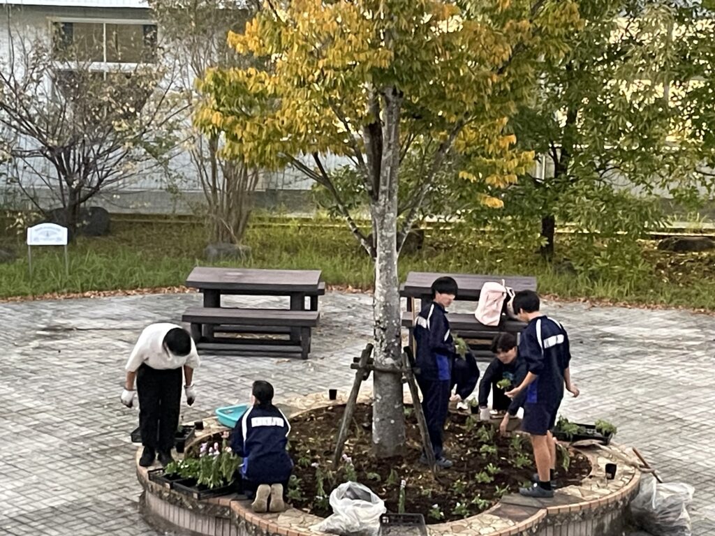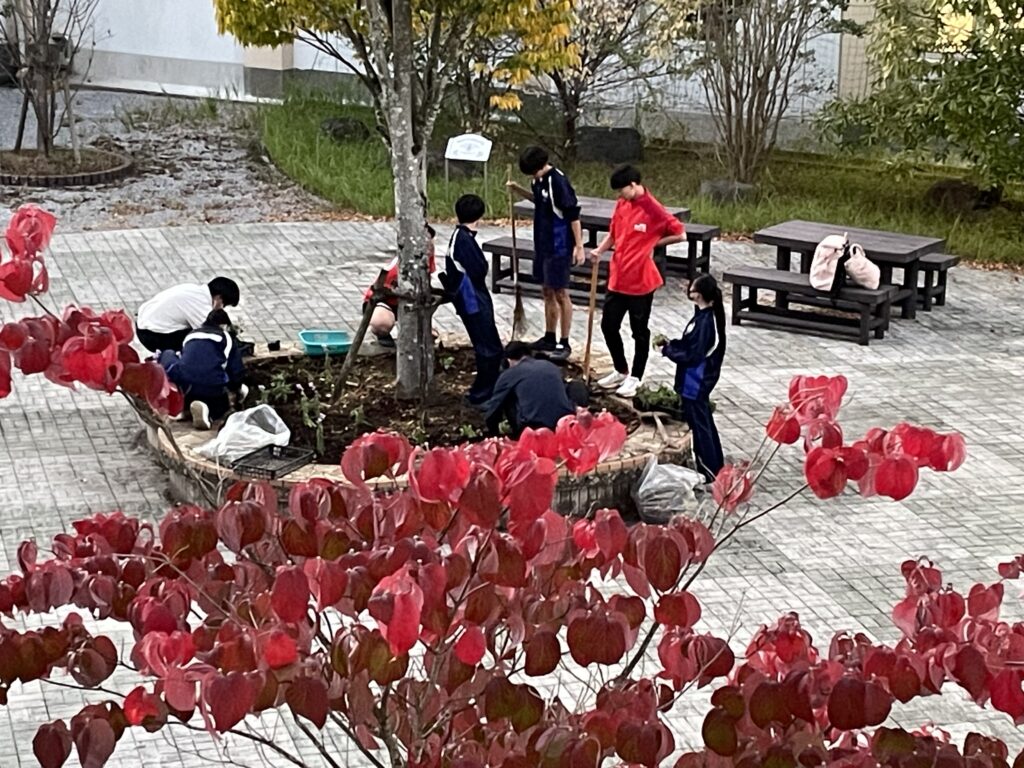 11月6日(木)、美化委員会の生徒が、中庭の花壇の花の植え替え作業を行いました。秋本番を迎え、急に肌寒くなる中、放課後の時間を使って作業をしてくれました。鶴城生の憩いの場である中庭に、パンジーなど色とりどりの花々が植えられました。