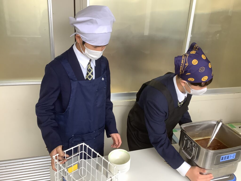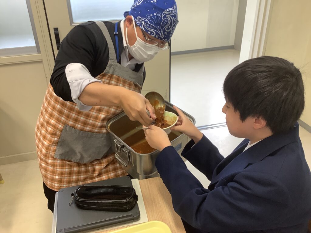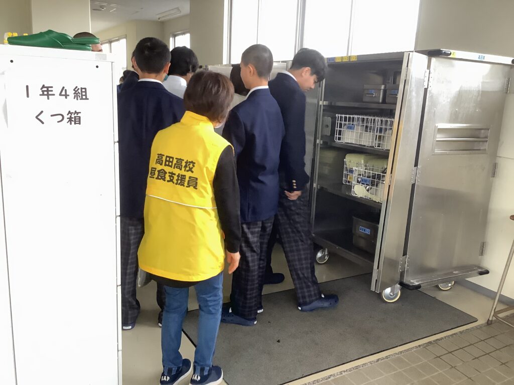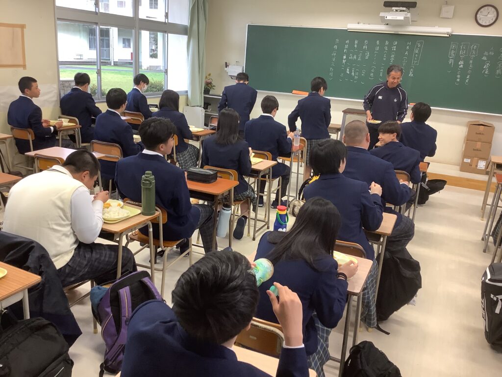 昼食提供では、市の担当者から、提供の目的やアレルギーをもつ生徒への対応、配膳のルールなどについて説明がありました。
