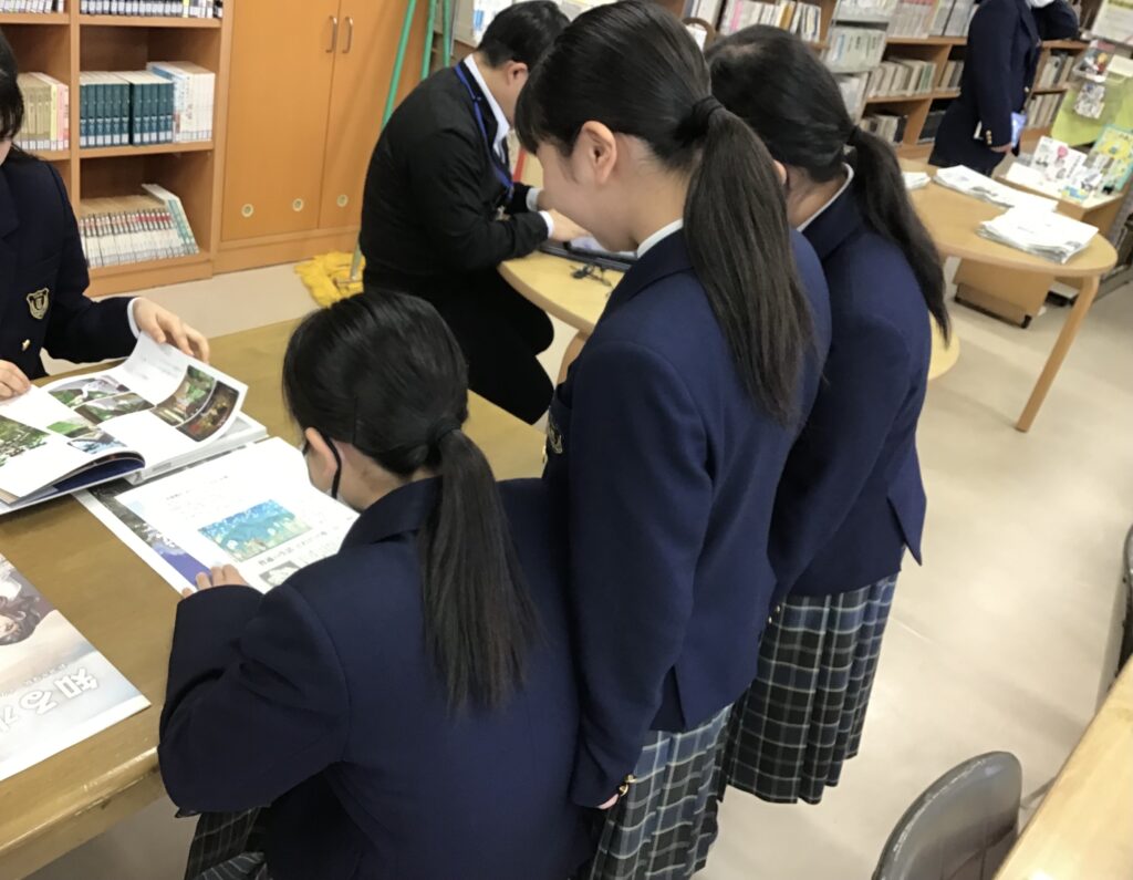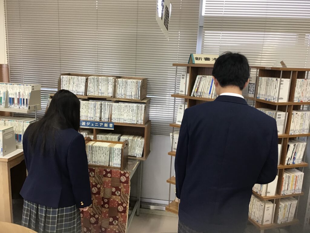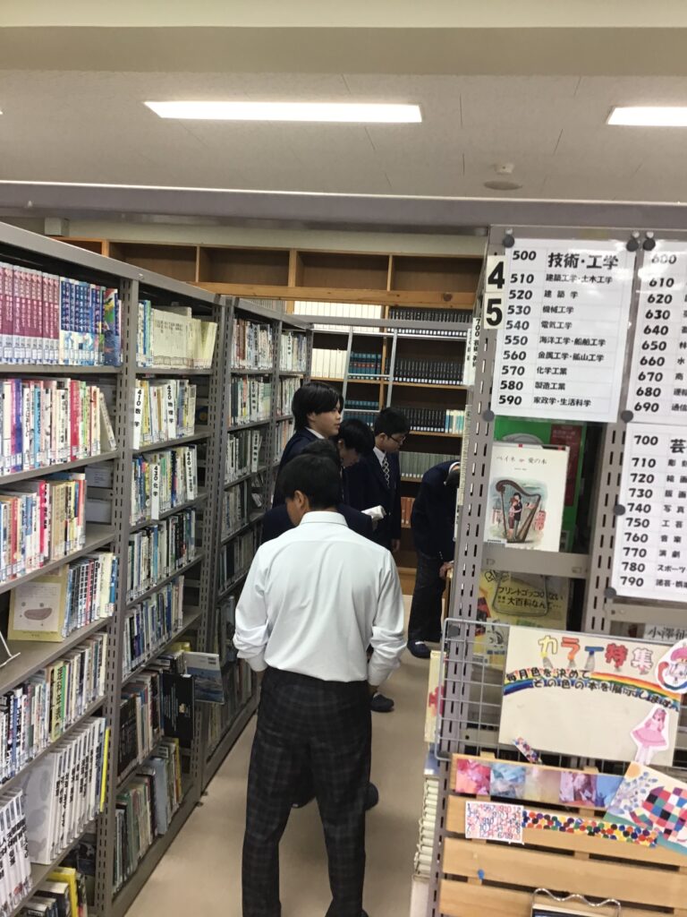 本校図書館で1年生の図書館オリエンテーションが行われました。司書から図書館の利用法や「今、読むことの大切さ」等を伝えられ、読書への意欲を高めている様子でした。