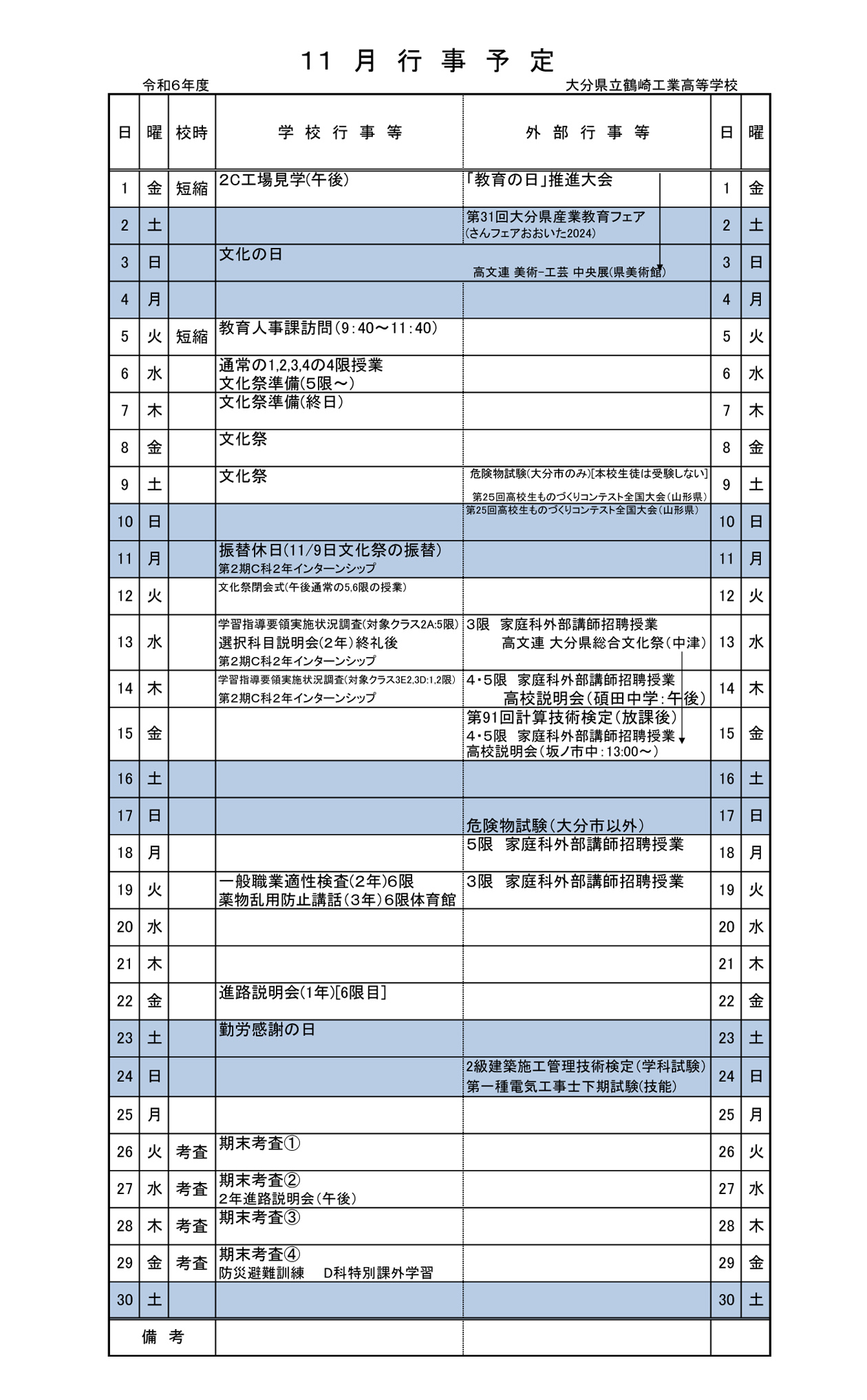11月 行事予定表 3.0