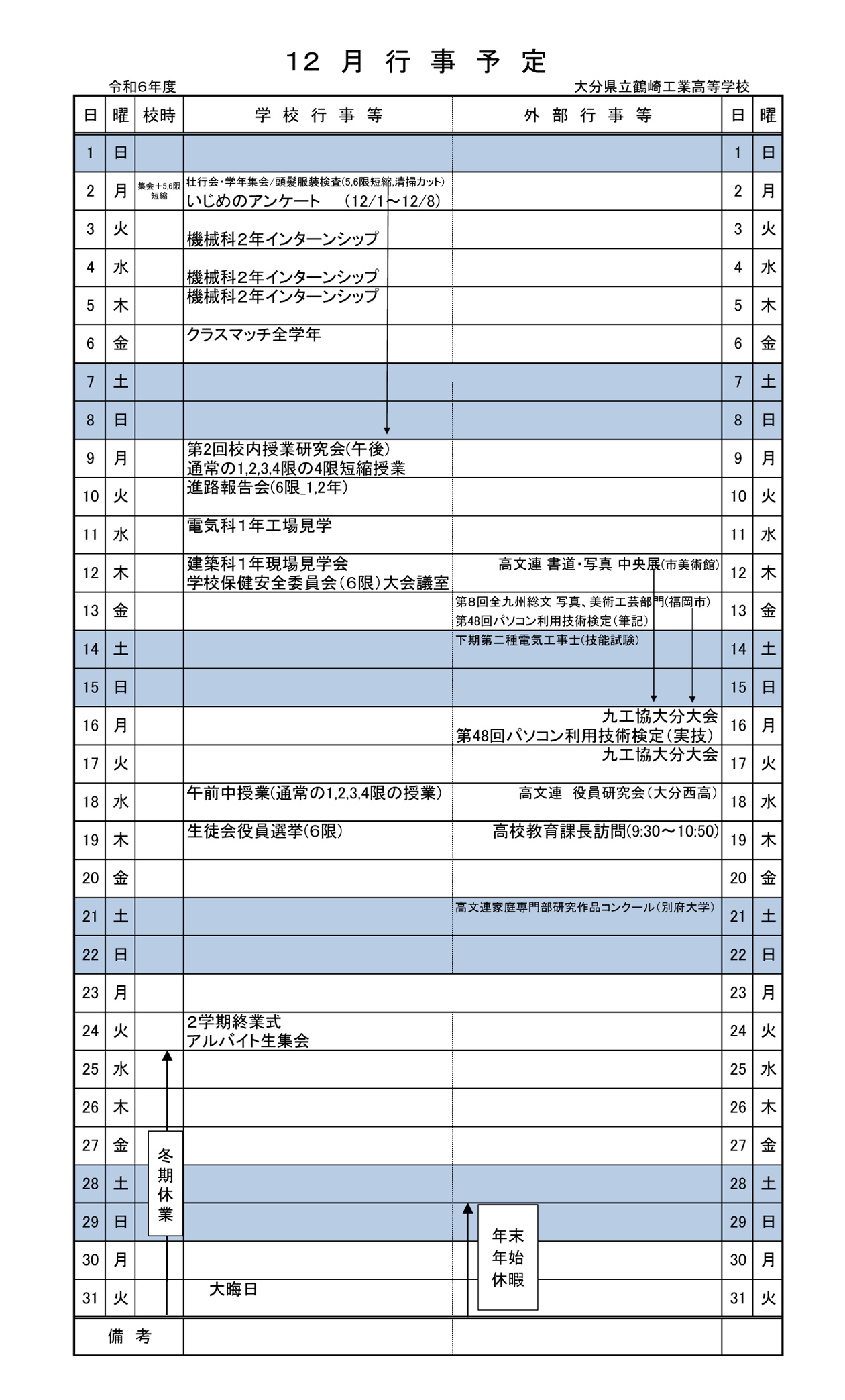 12月 行事予定表 2.0