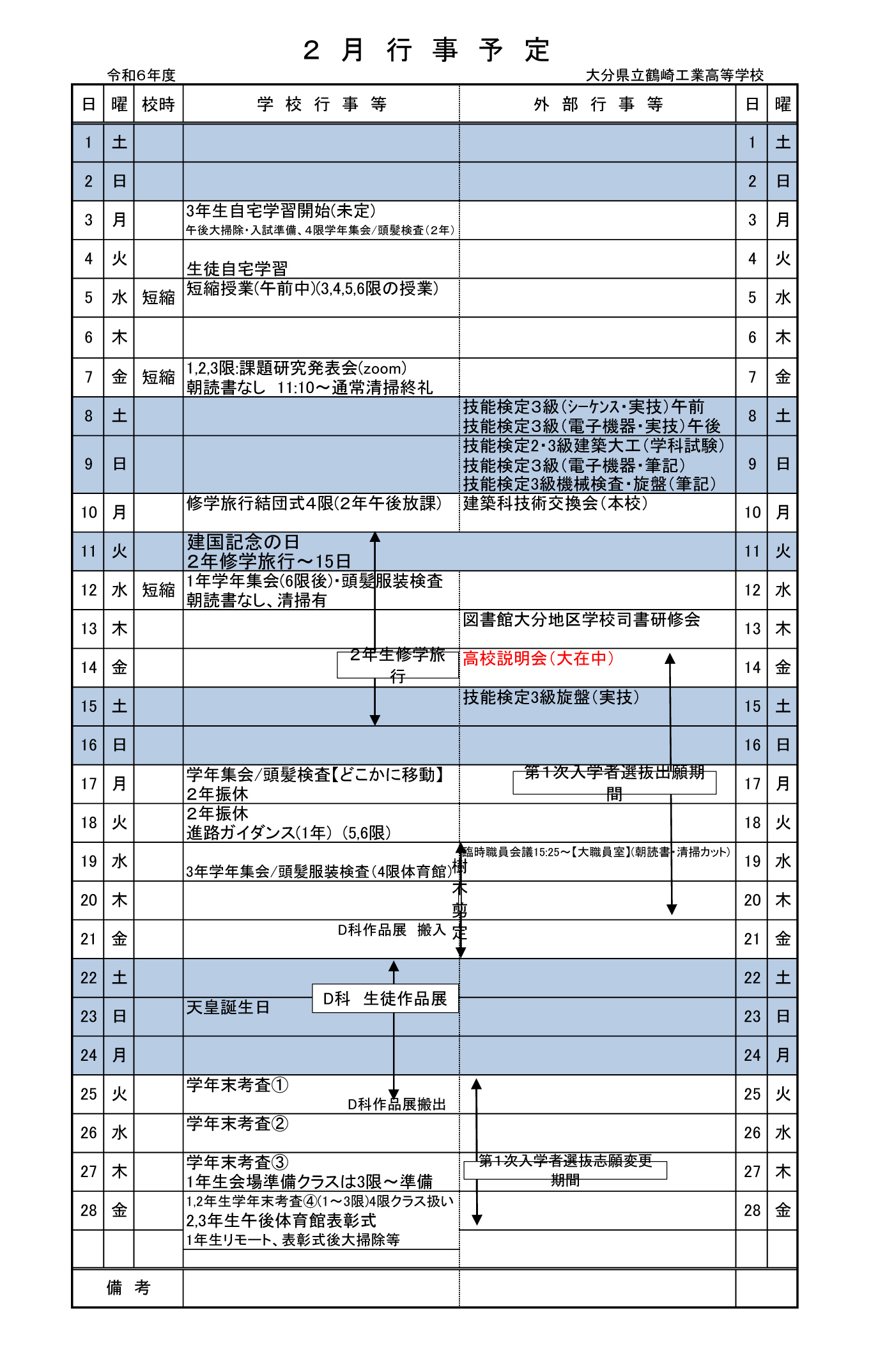 令和6年度 2月 行事予定表 3.0