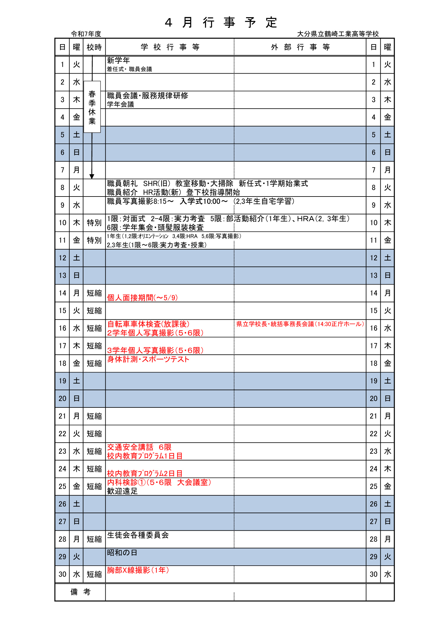 4月 行事予定表 2.0
