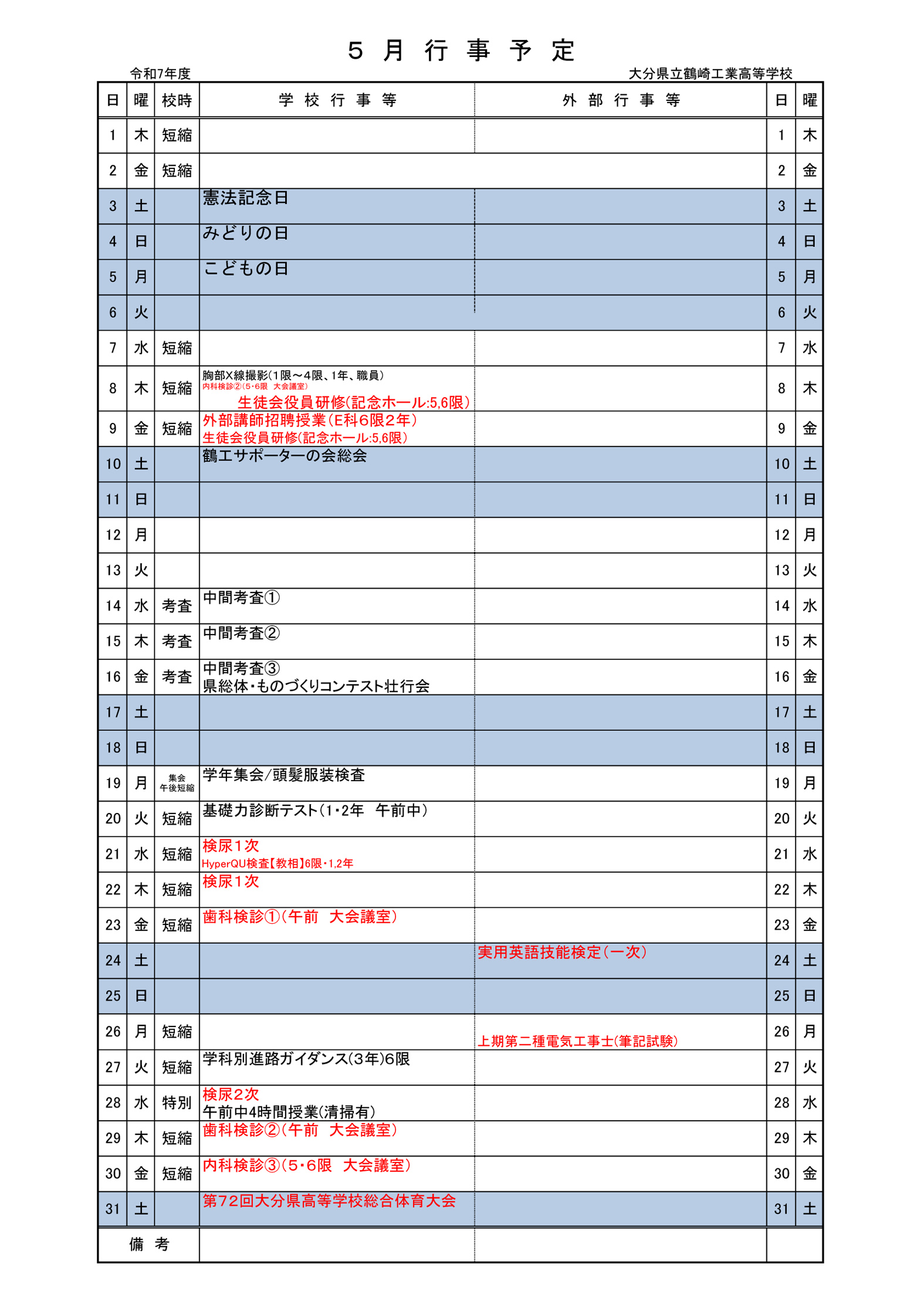 5月 行事予定表 2.0