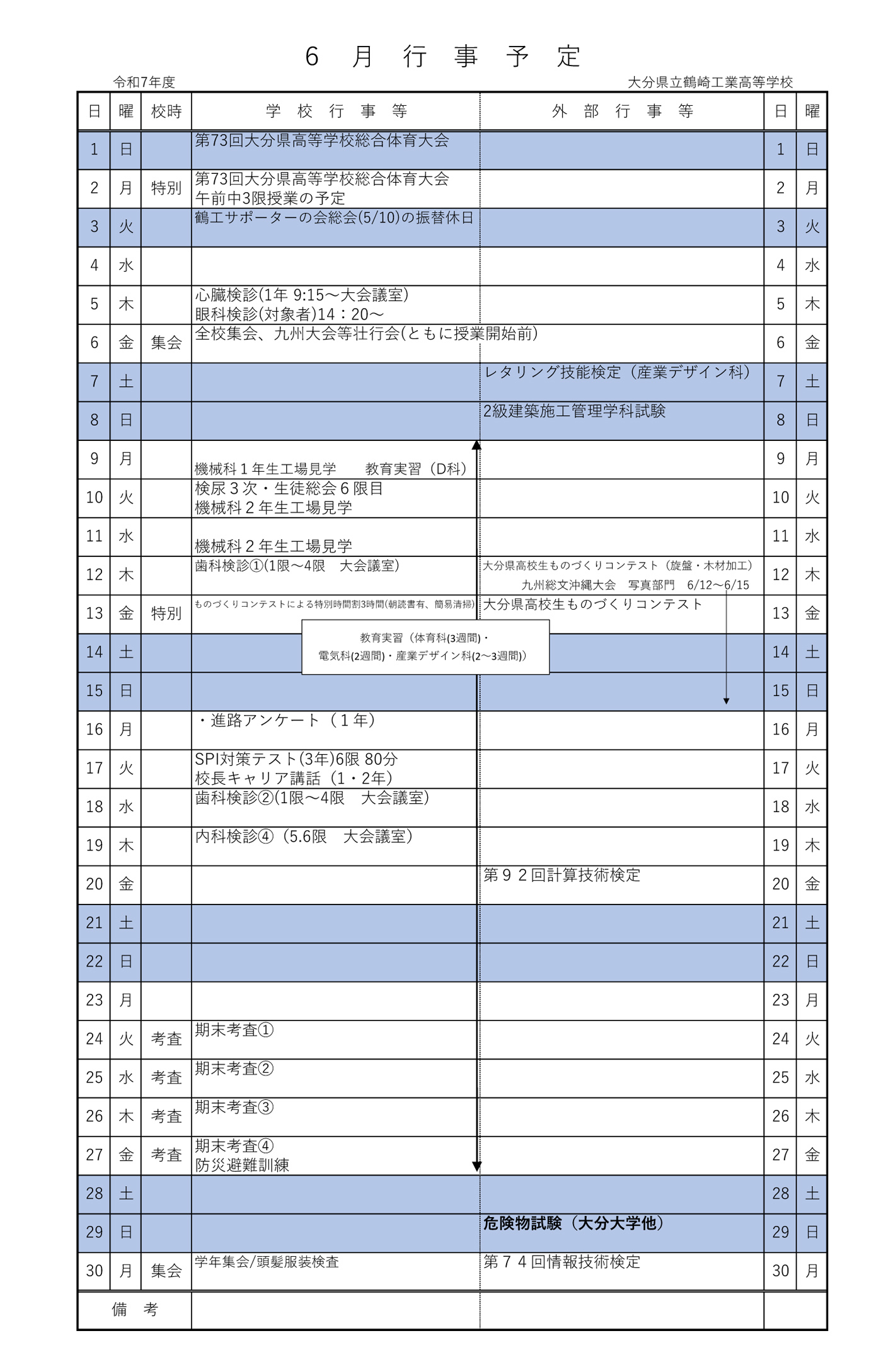 6月 行事予定表