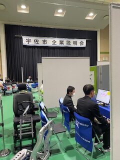 会場には1・2年生の学年主任やクラス担任だけでなく、本校の吉渡正満校長、清末壽二教頭も足を運びました。清末教頭は、以前本校で進路指導主任を務めていたこともあり、懇意の企業担当者さまと懐かしそうに談笑していました。宇佐市からは企画立案の「宇佐市地域雇用創造協議会」さま、宇佐市役所経済部商工振興課長の永松清人さまをはじめ、宇佐市役所の方々が献身的に運営にあたっていらっしゃいました。また、宇佐市の就職支援に係る充実した取組は県内でも有名であるため、当日も中津市役所や豊後高田市役所の担当者さま、市外企業の人事担当者さまなども視察に訪れていました。