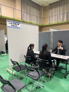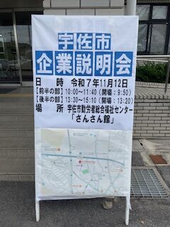 令和7年11月12日(木)に、「さんさん館(宇佐市勤労者総合福祉センター)」を会場とする『第2回宇佐市企業説明会』に、本校の1・2年生全員が参加しました。3年生の就職希望者等約60名が参加した6月の第1回に続く宇佐市主催の企業説明会です。1年生は午前の部、2年生は午後の部に参加しました。今回は、近年の説明会と異なる点があります。