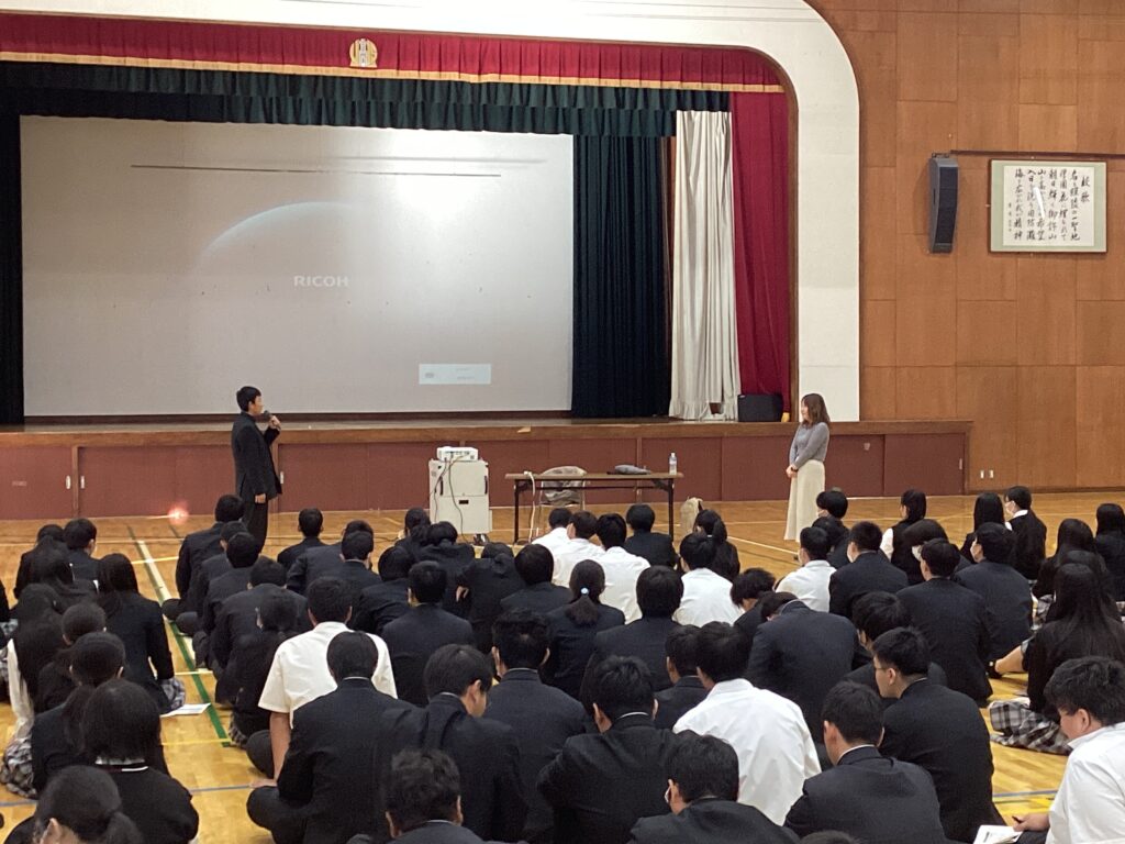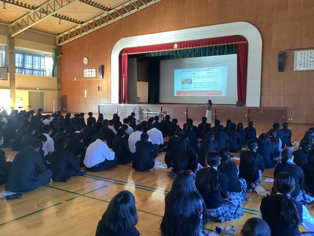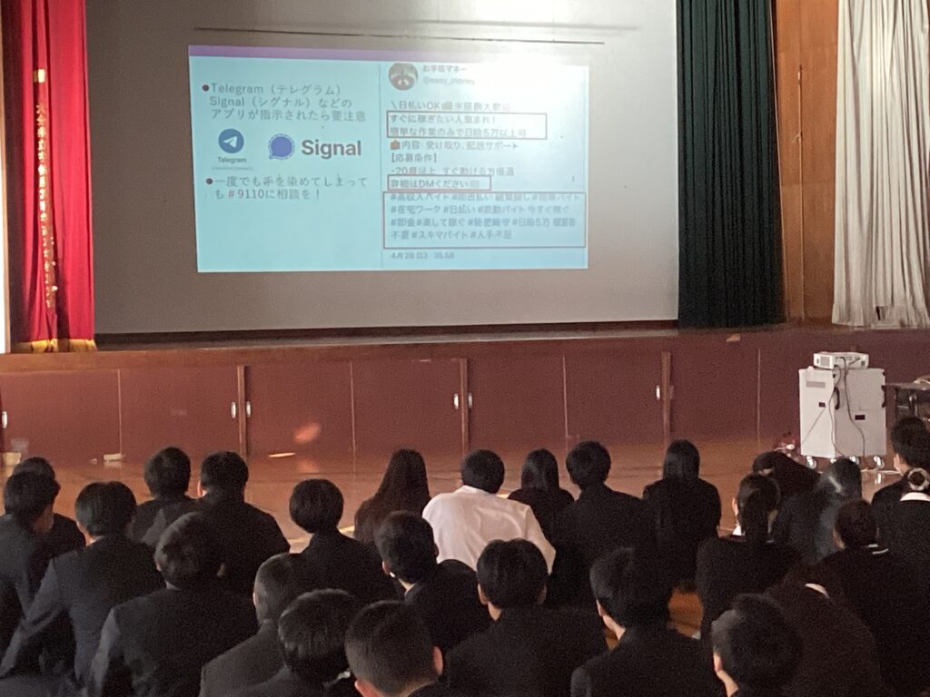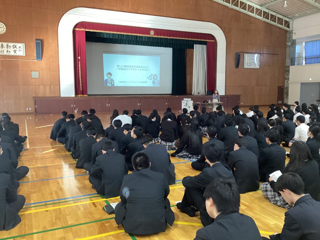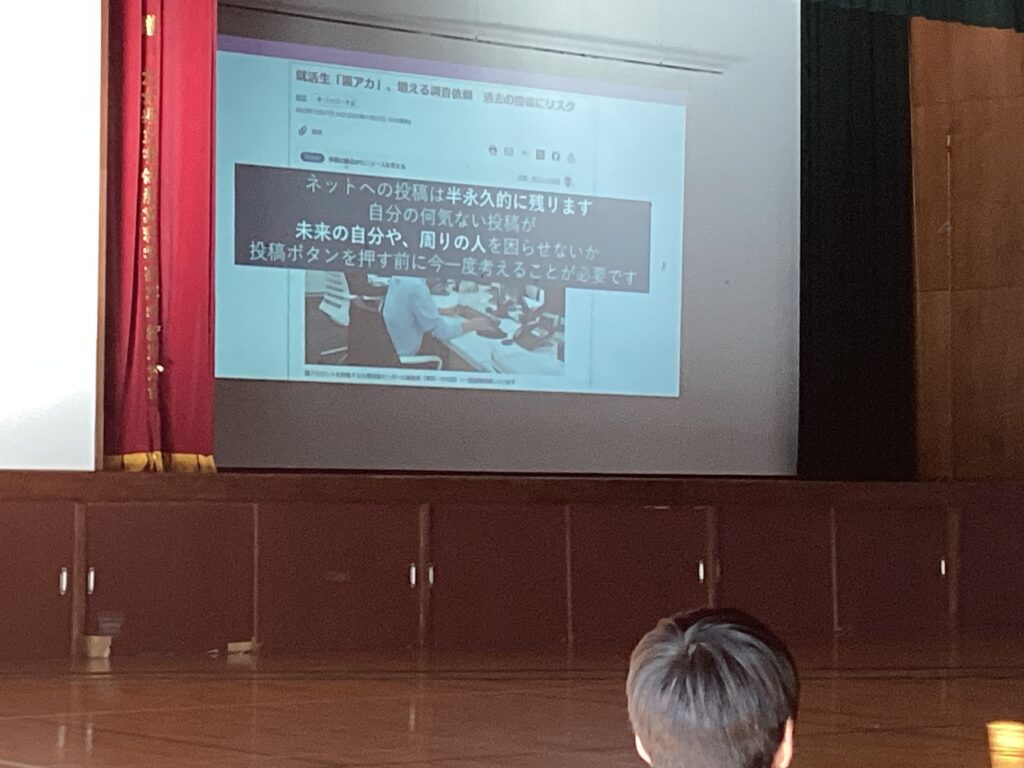 11月21日(金)、ハイパーネットワーク社会研究所より矢野歩実様を講師に招き「情報モラル・セキュリティー教室」を実施しました。情報社会で生きていくために、SNSでの発信や個人情報の扱い、パスワード管理など、インターネットを安全に使うための基礎を学びました。近年問題となる闇バイトの危険性についても説明があり、生徒たちは真剣に耳を傾けていました。「フェイクニュースとの区別が難しい」との声もあり、情報を見極める力の重要性を再確認する機会となりました。