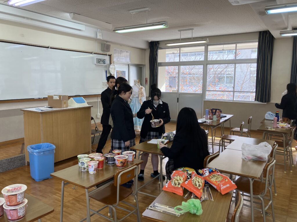 当日は、事前に送っていただいた韓国のスナック菓子やレトルト食品を実際に試食しながら、食文化や食生活の違いについて意見交換を行いました。日本にはない味付けやパッケージに興味津々の様子で、互いの国の(食)文化への理解を深める貴重な機会となりました。