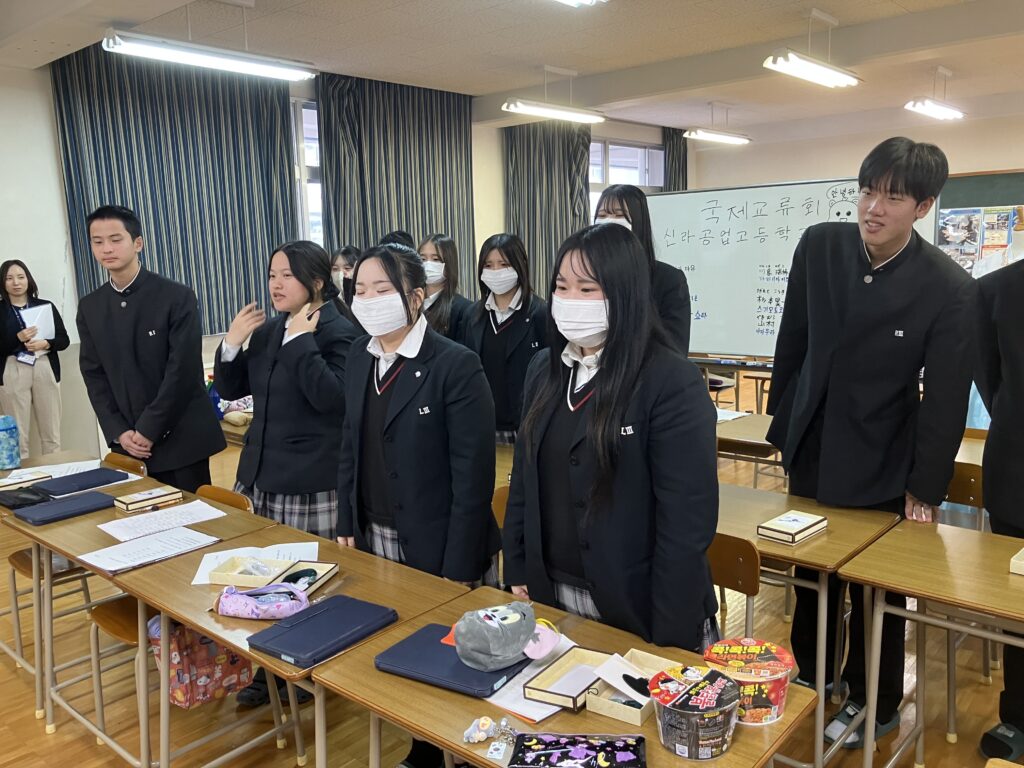 次回は、1月14日(水)に新羅工業高校の生徒が来日し、本校を訪問する予定です。授業見学や生徒同士の交流、部活動の見学・体験などを計画しており、今回のオンライン交流をきっかけに、さらに交流が深まることを生徒たちも楽しみにしています。