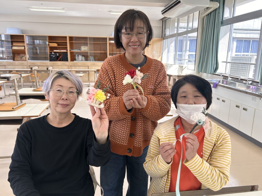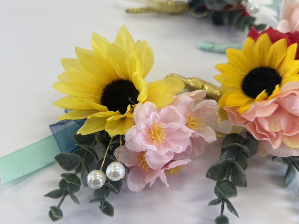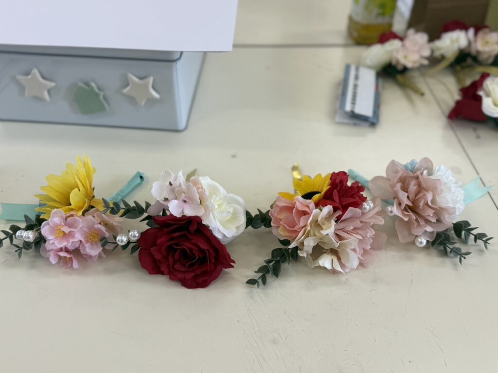 また、卒業式当日に卒業生および3年部の先生方が胸に付けるコサージュの仕上げ作業も行いました。一つ一つ丁寧に、卒業生の新たな門出を祝う気持ちを込めながら、心を込めて準備してくださいました。