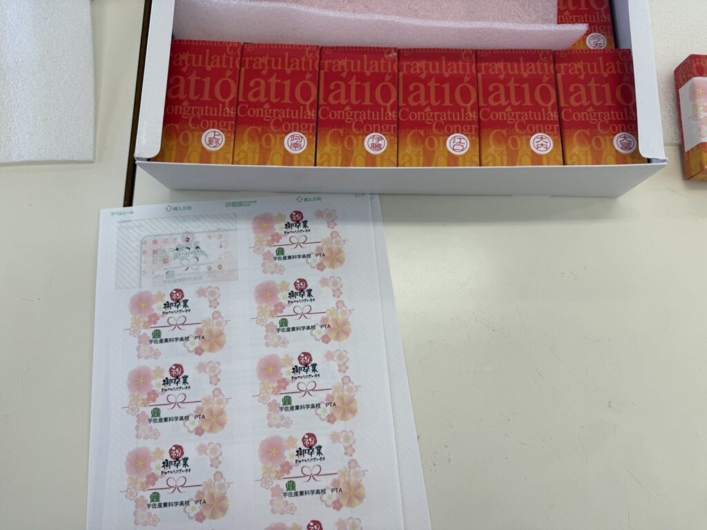 2月19日(木)、PTA役員の有志の皆様にお集まりいただき、3月1日(日)に挙行される卒業式に向けて、PTAから卒業生へ贈る記念品の準備を行いました。
