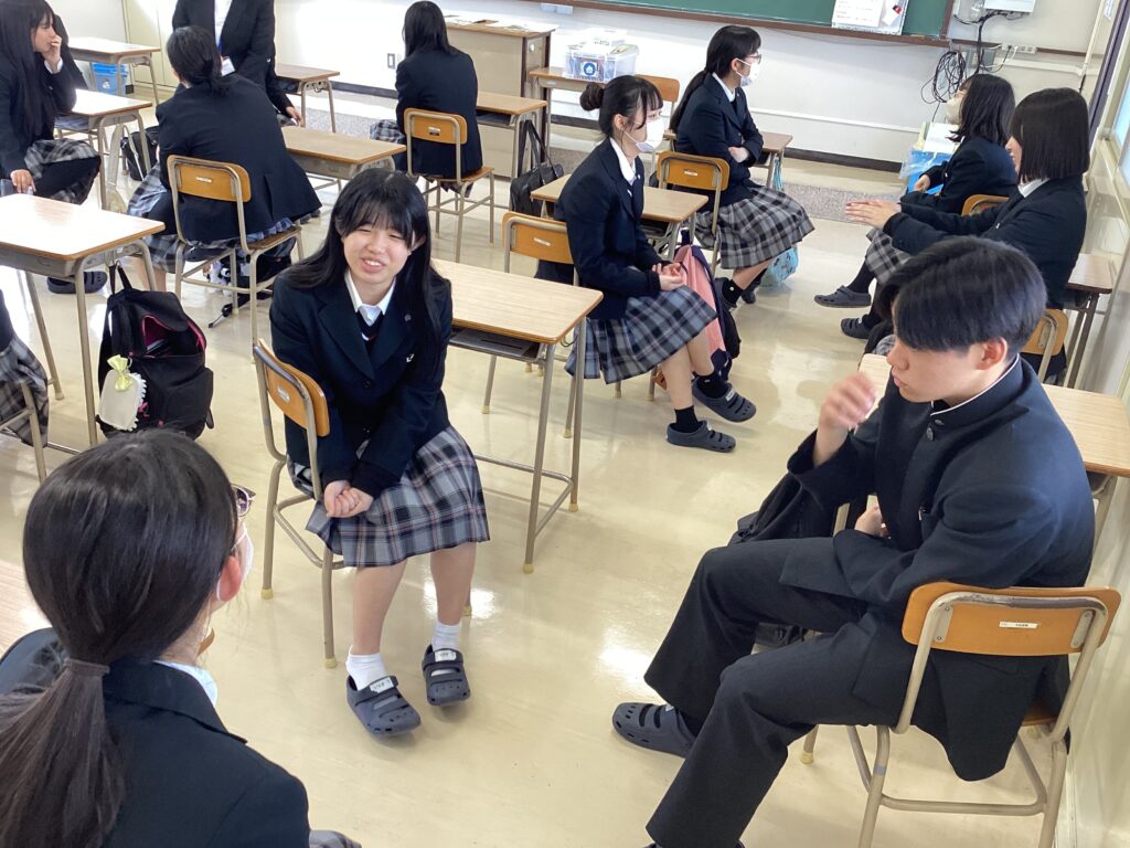 4月8日(水)始業式の日、HRAの時間に今学期最初の「うささんタイム」を実施しました。今回の活動は「新聞紙ジグソーパズル」「お題でトーク」でした。破いた新聞紙をグループごとにつなぎ合わせる「新聞紙ジグソーパズル」で、春休み明けの緊張をほぐし、次に2人組になって「一日を自由に使えるとしたら何をする?」のお題で話をする、相手の話を聴く、という活動をしました。どのクラスも和やかな雰囲気で活動に取り組んでおり、話をする中で、お互いの意外な一面を知ることができたのではないでしょうか。新年度もクラスの中でよりよい関係を築くことで、充実した学校生活が送れることを願っています。
