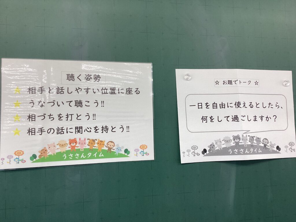 本校では①クラスの人を理解する②自分を理解する③周りとの関係をよりよくする力を身に付けることを目的として、人間関係プログラム「うささんタイム」を月1回程度、15分間の時間を設けて実施しています。
