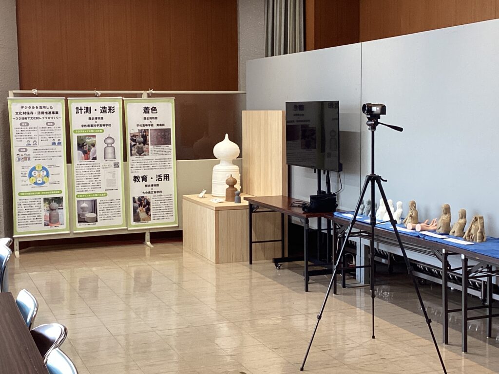 これは昨年度から歴史博物館と協同して行っている文化財保護の取り組みで、保護したい文化財の3Dデータを取り、3Dプリンターでレプリカを製作し、宇佐高校に着色をしてもらい、気軽に見ることのできない文化財を地域の人々に紹介したり、小中学校や盲学校の生徒に触れて学習してもらうことを目的に活動しています。