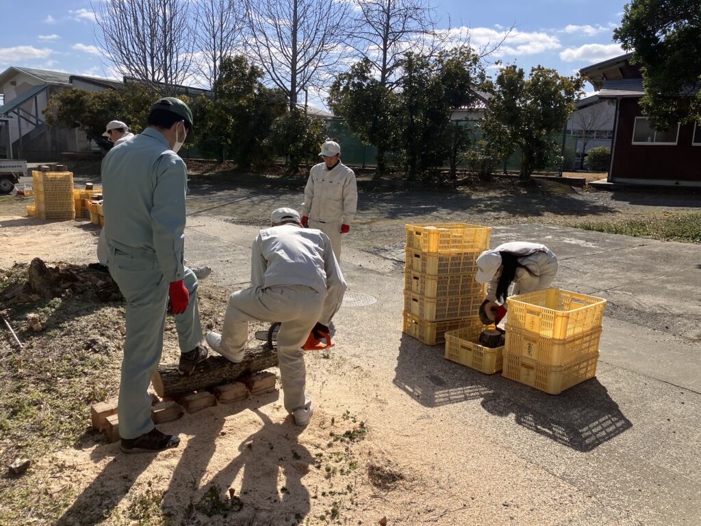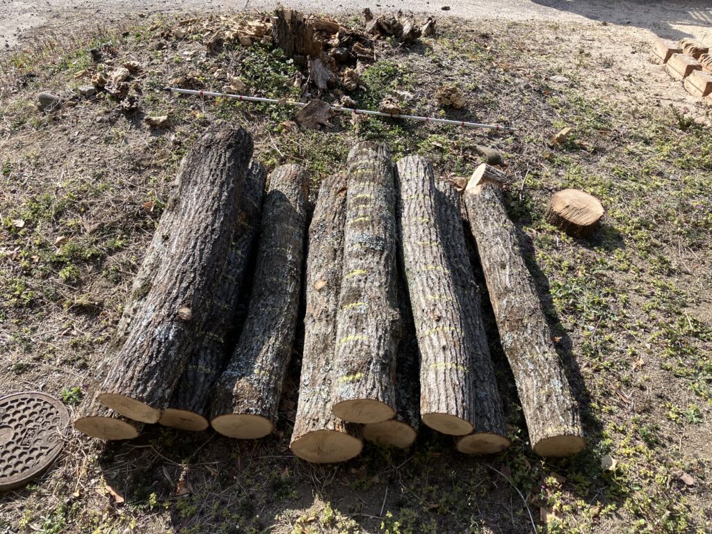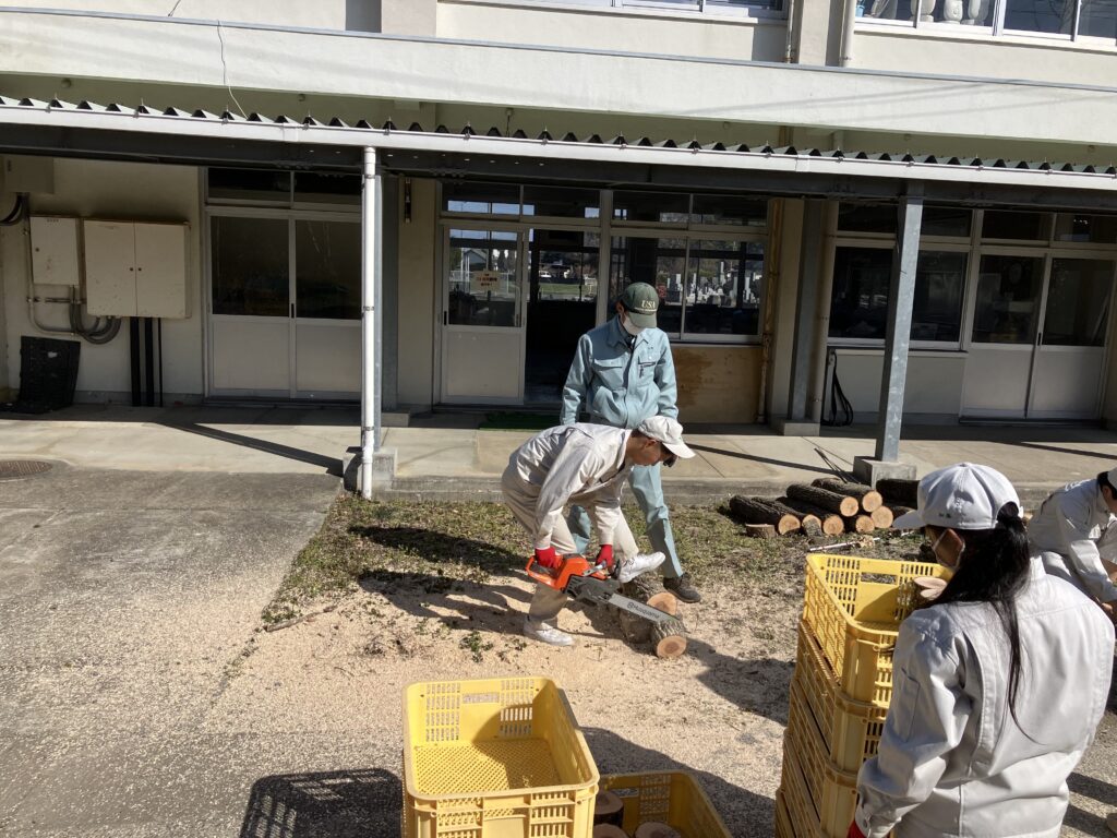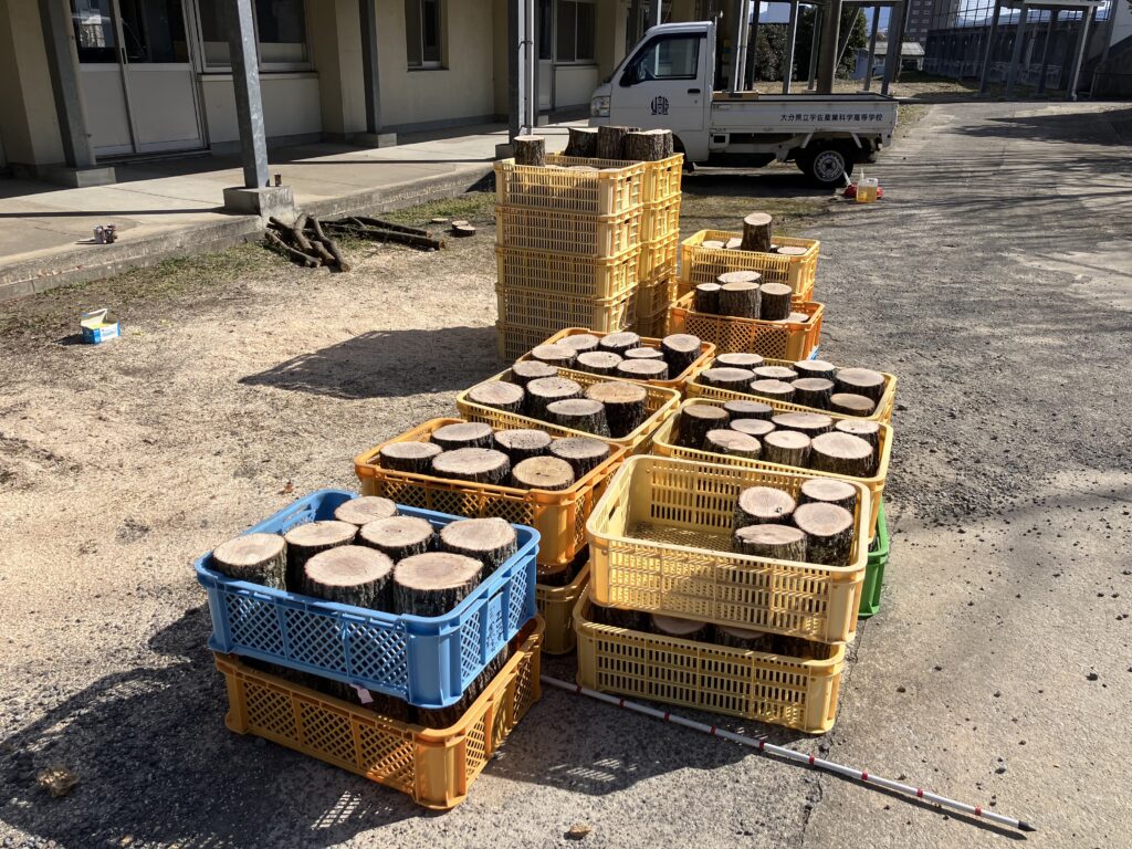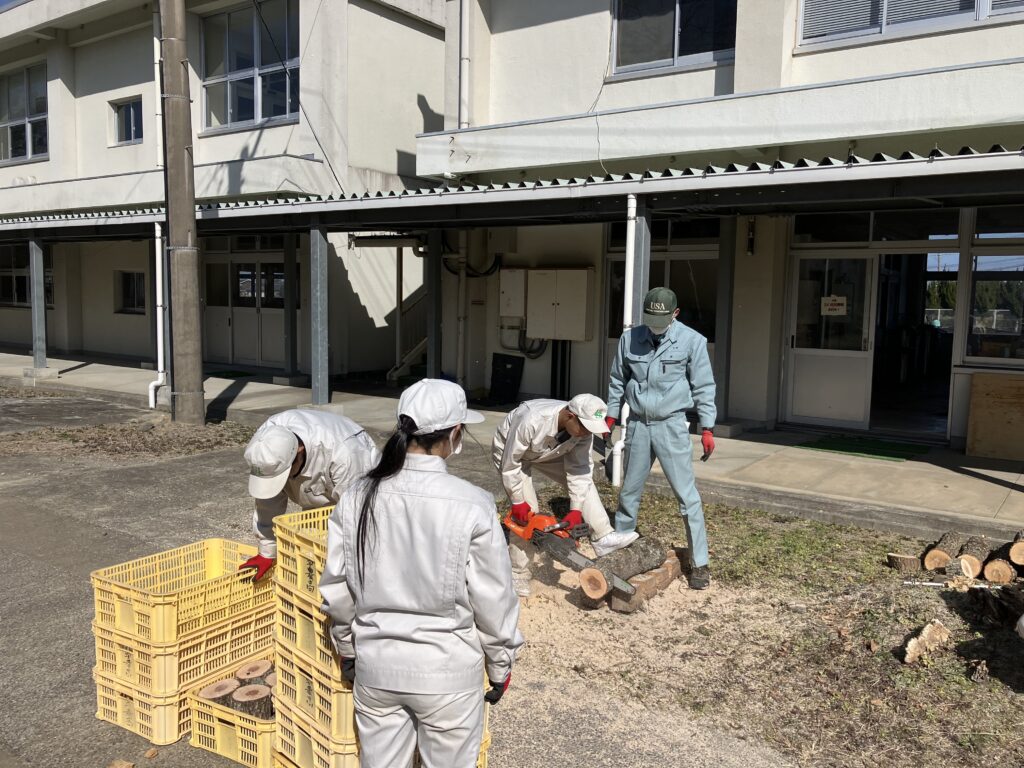 今回の準備では、思っていた以上にチェーンソーで原木を上手に切ることができました。今後の培養や観察、研究を通して、短い原木でも同じ収穫量が得られれば、生産性の向上につながります。とても楽しみな研究です。